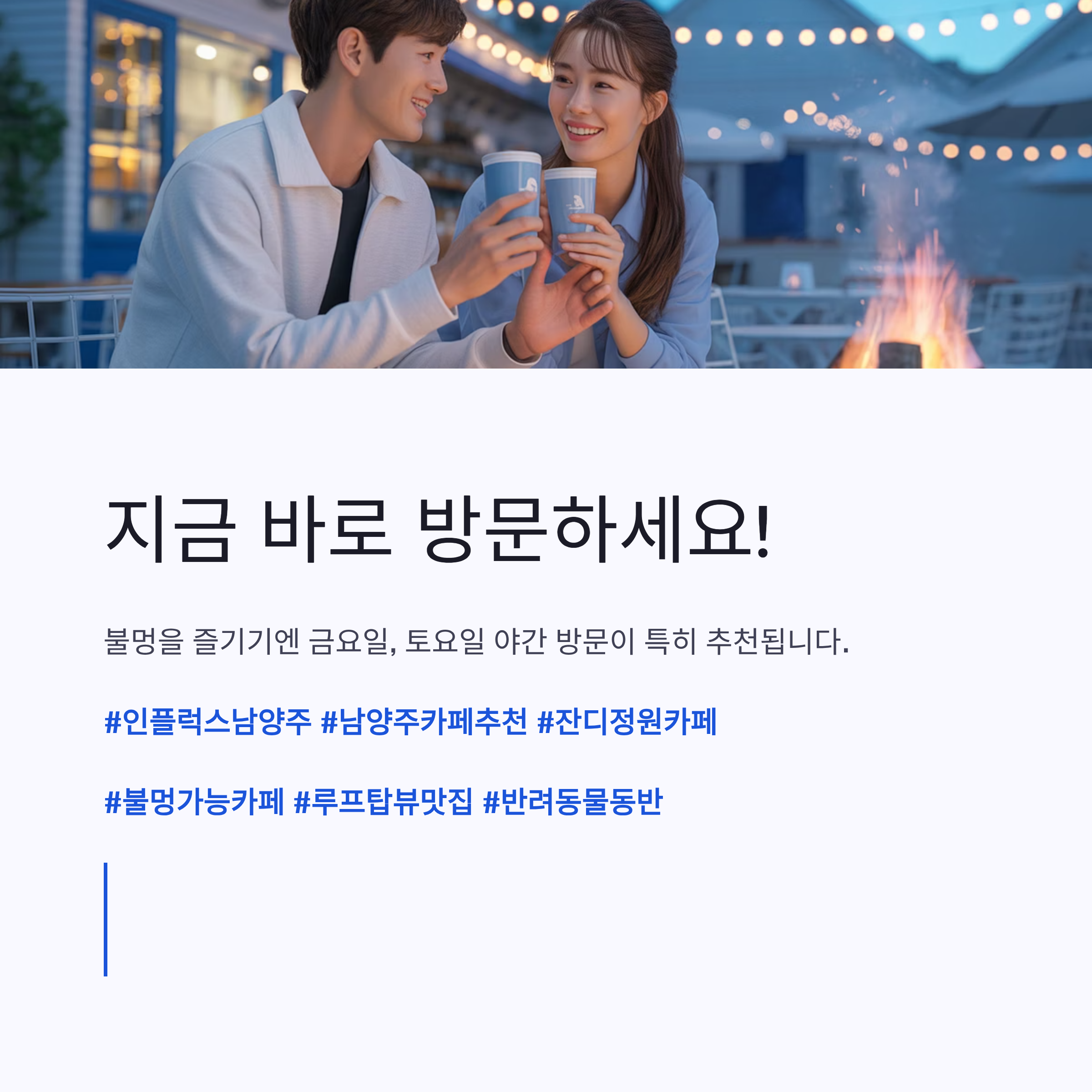 불멍을 즐기기엔 금요일, 토요일 야간 방문이 특히 추천됩니다.