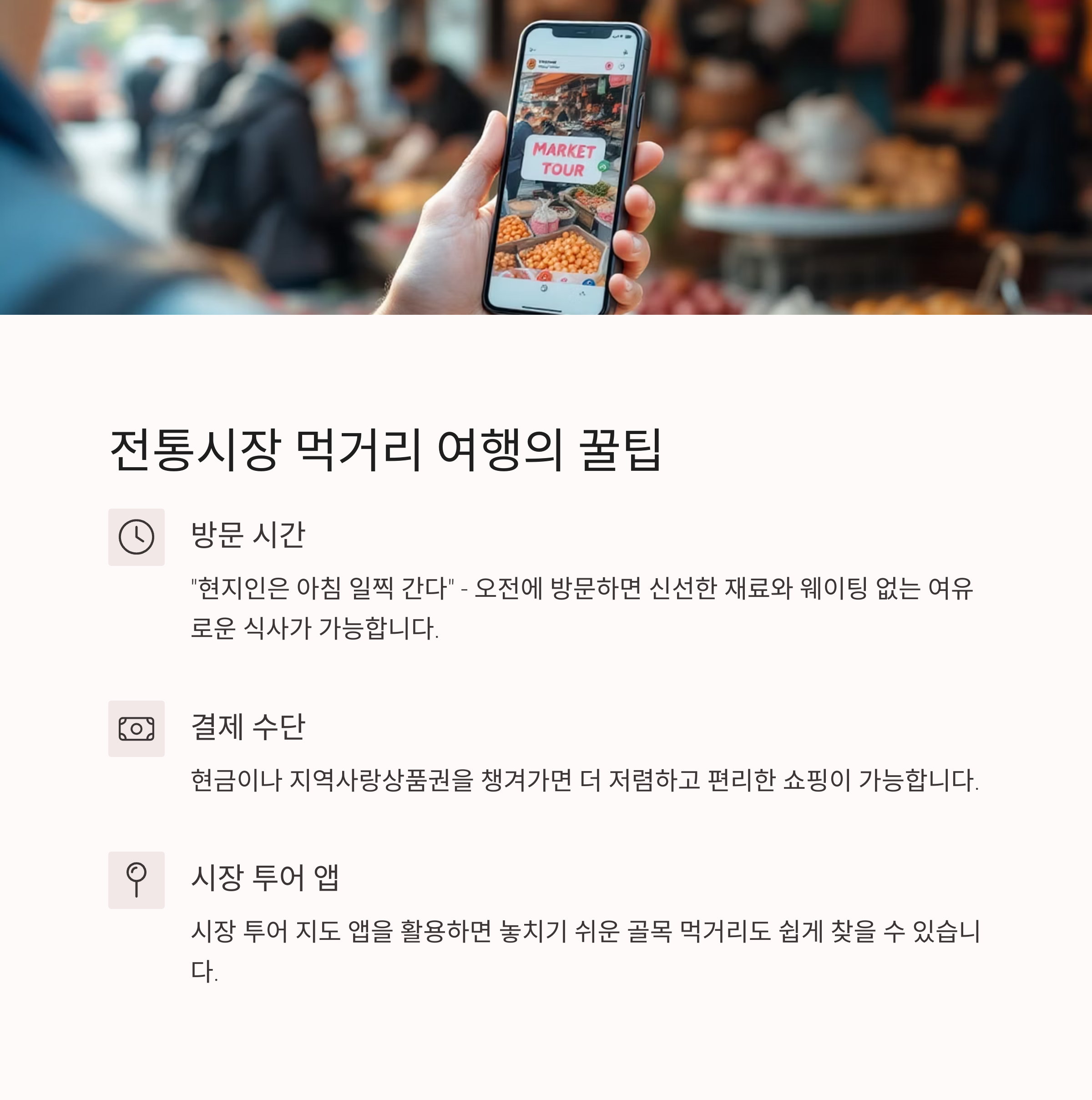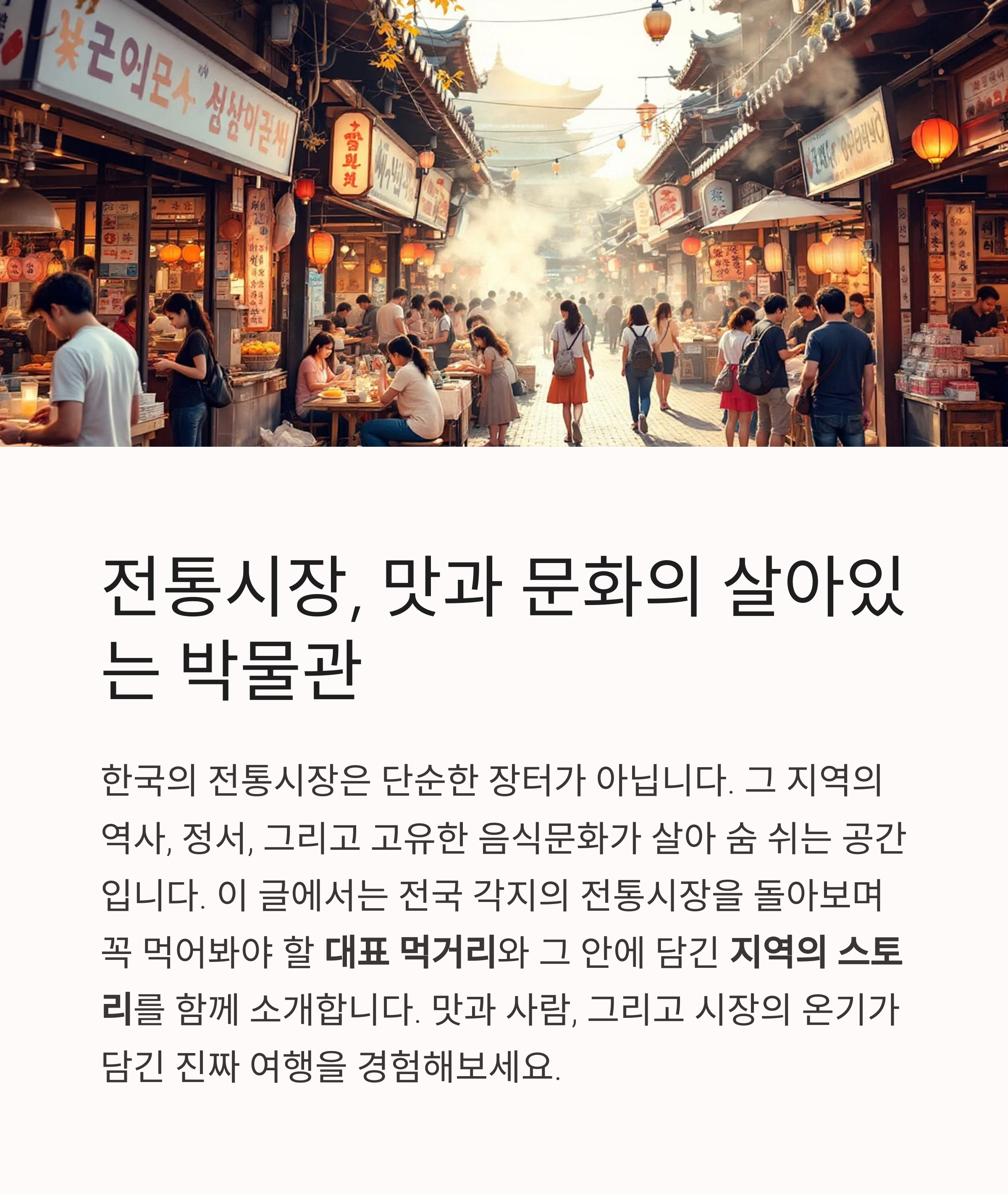 맛과 사람, 그리고 시장의 온기가 담긴 진짜 여행을 경험해 보세요.