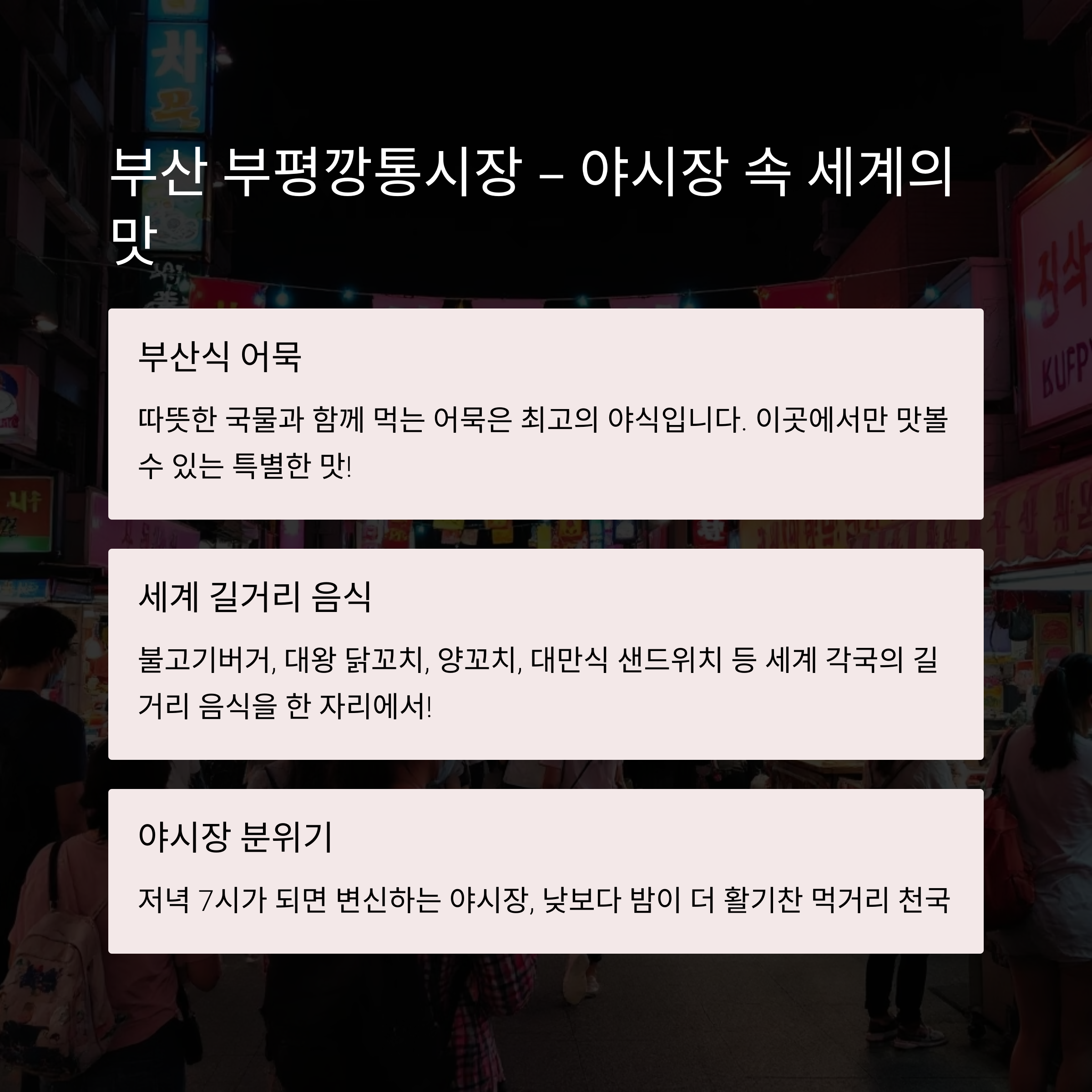 부산 부평깡통시장 – 야시장 속 세계의 맛