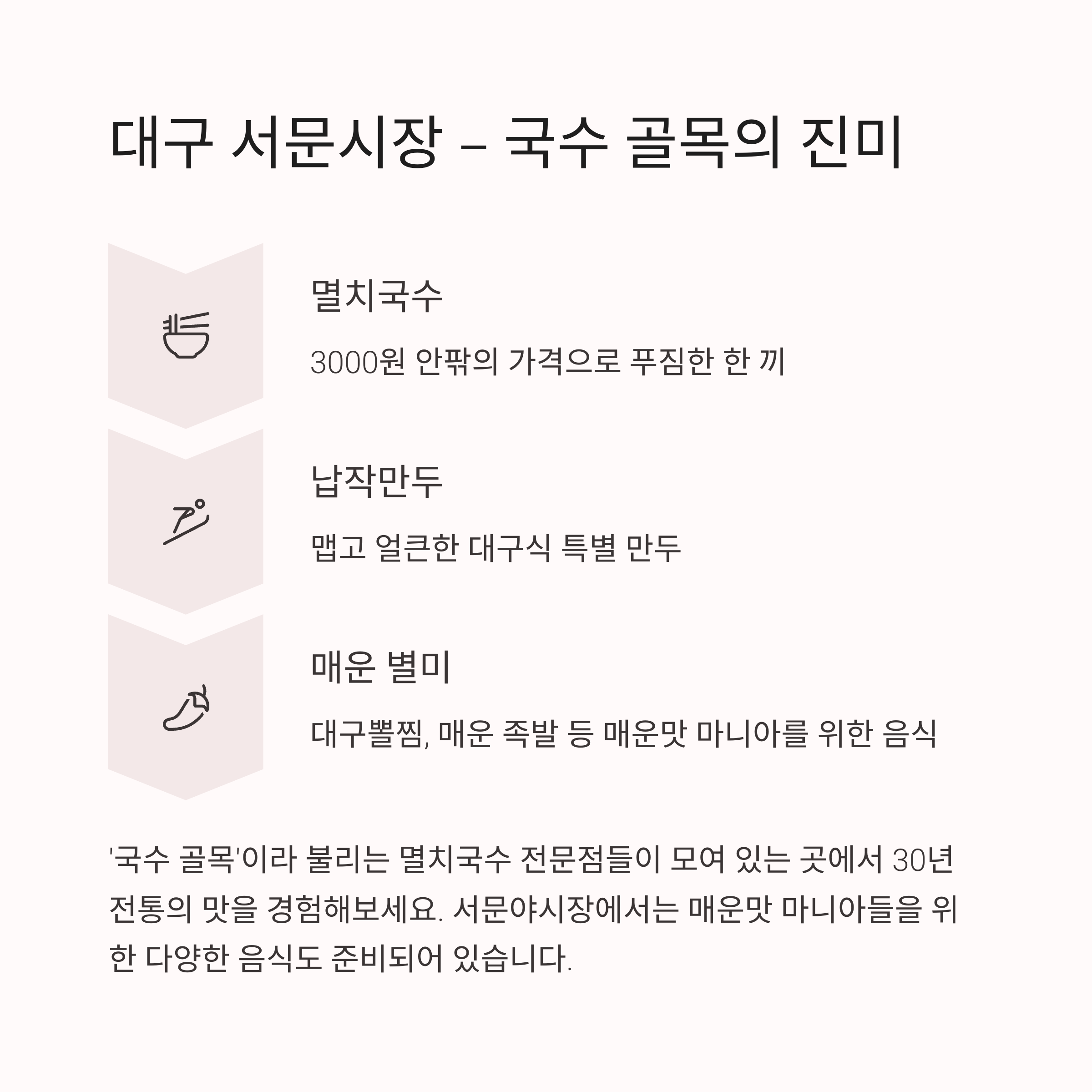 | 서문시장 | 대구 | 멸치국수/납작만두 | 매운맛 마니아 천국 |