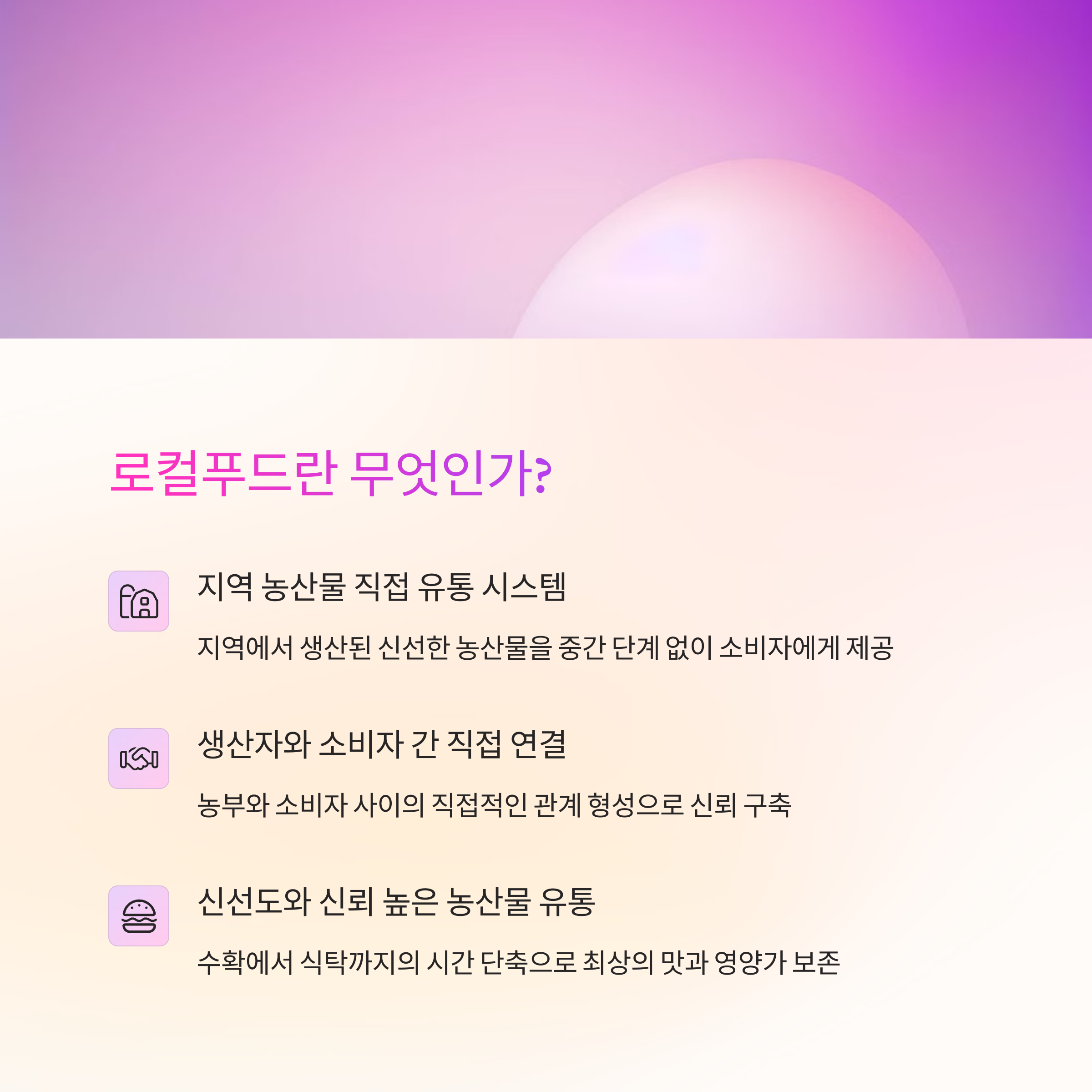 | 로컬푸드 직매장 | 지역 농산물 판매를 위한 신뢰 기반 유통공간 |
