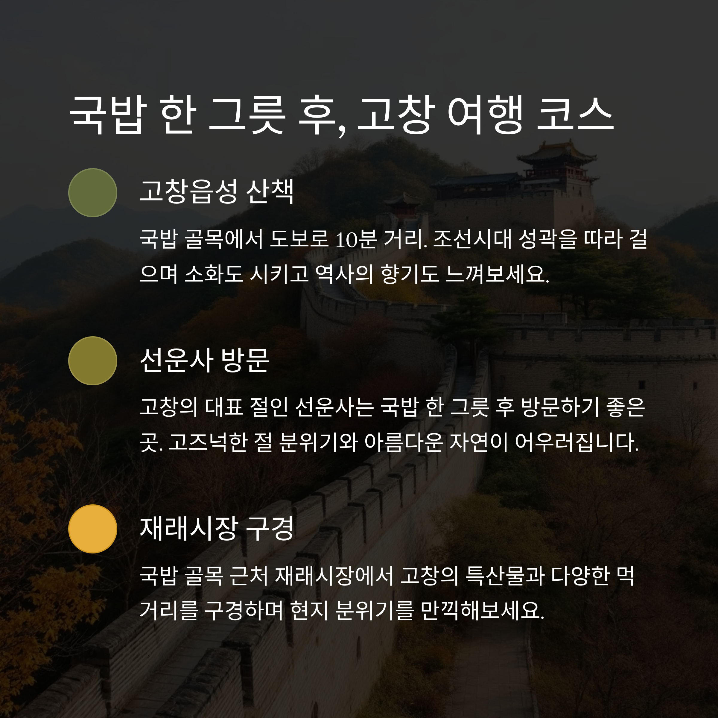 국밥 한 그릇 후, 고창 여행은 이렇게 이어진다