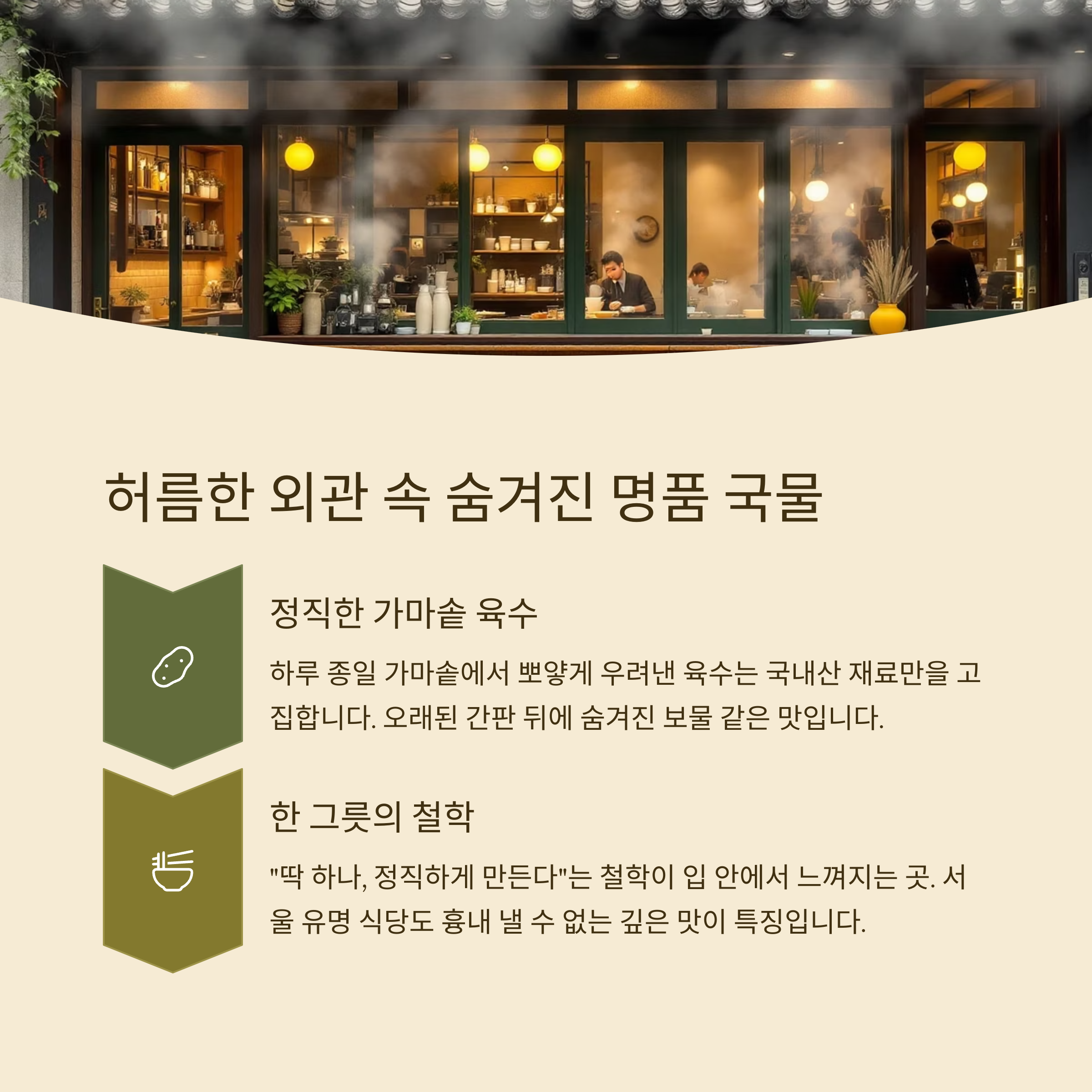 | 소머리국밥 | 8,000 | 진한 사골, 머릿고기 가득 |