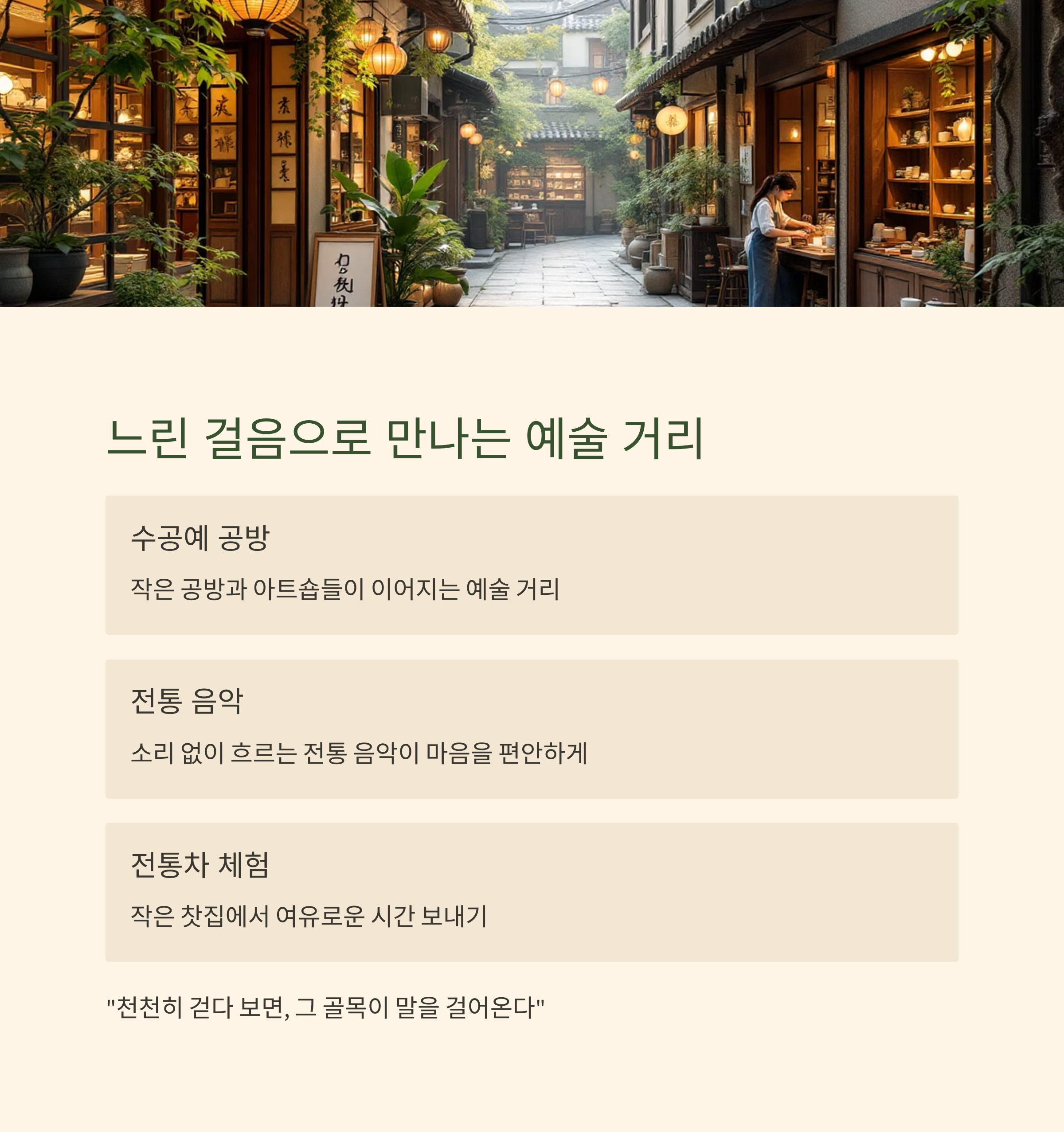 소담한 골목길에서는 소리 없이 흐르는 전통 음악이