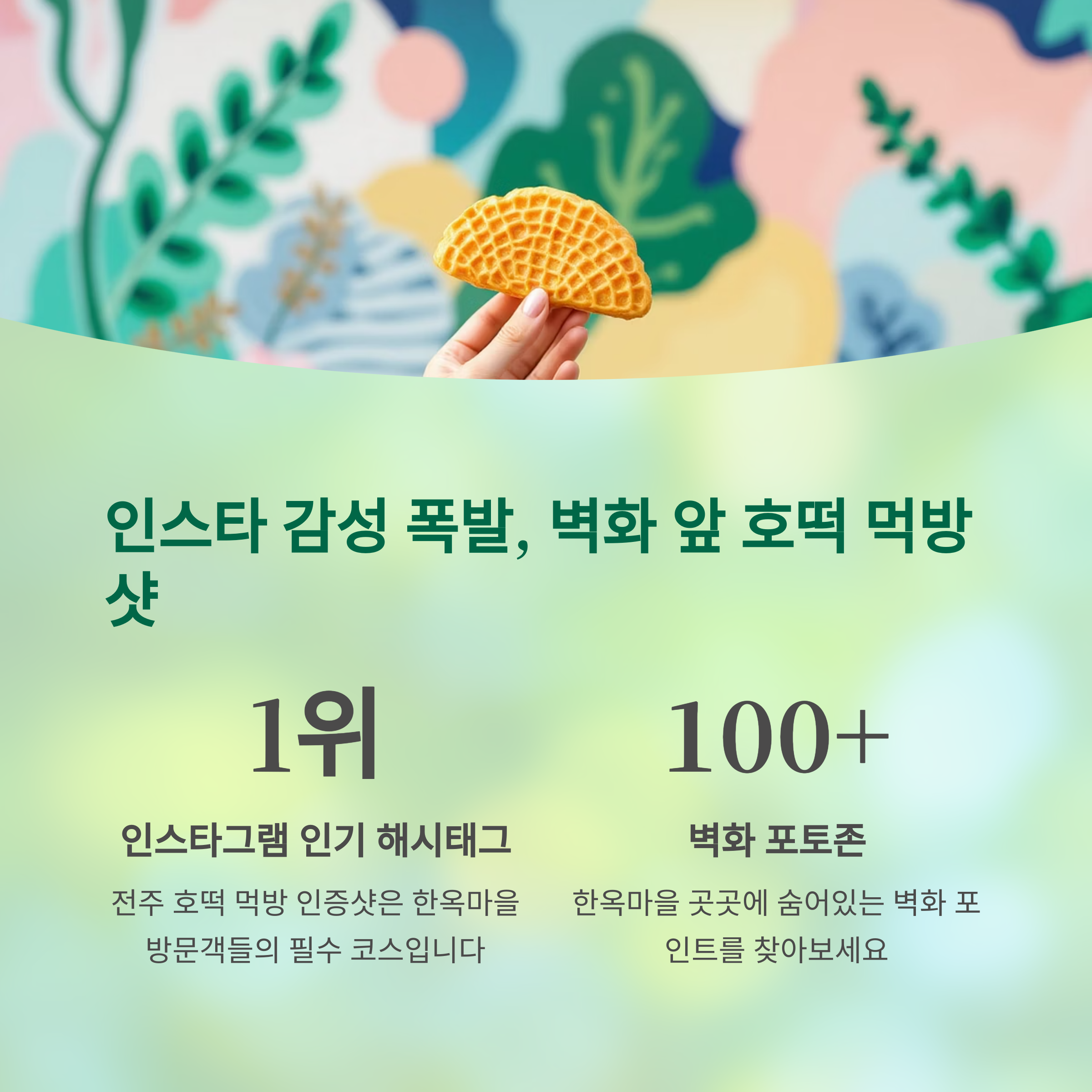 인스타 감성 폭발, 벽화 앞 호떡 먹방샷