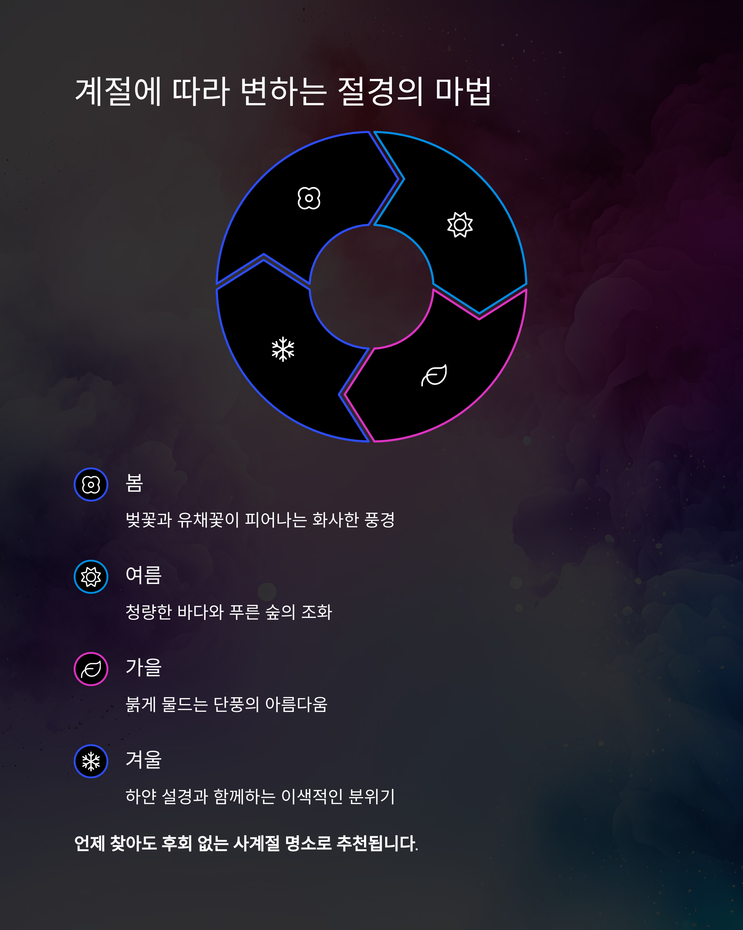 언제 찾아도 후회 없는 사계절 명소로 추천됩니다.