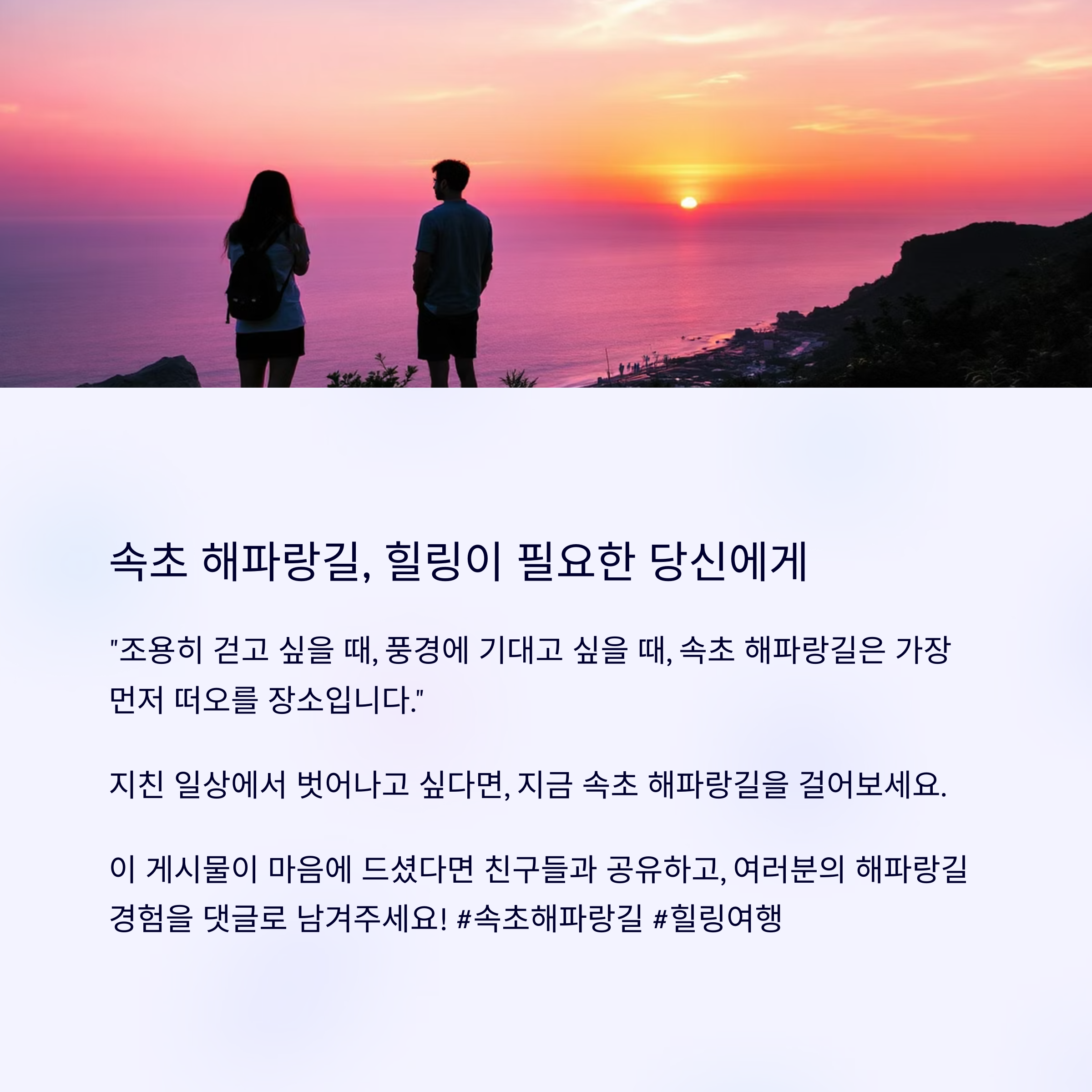 지친 일상에서 벗어나고 싶다면, 지금 속초 해파랑길을 걸어보세요.