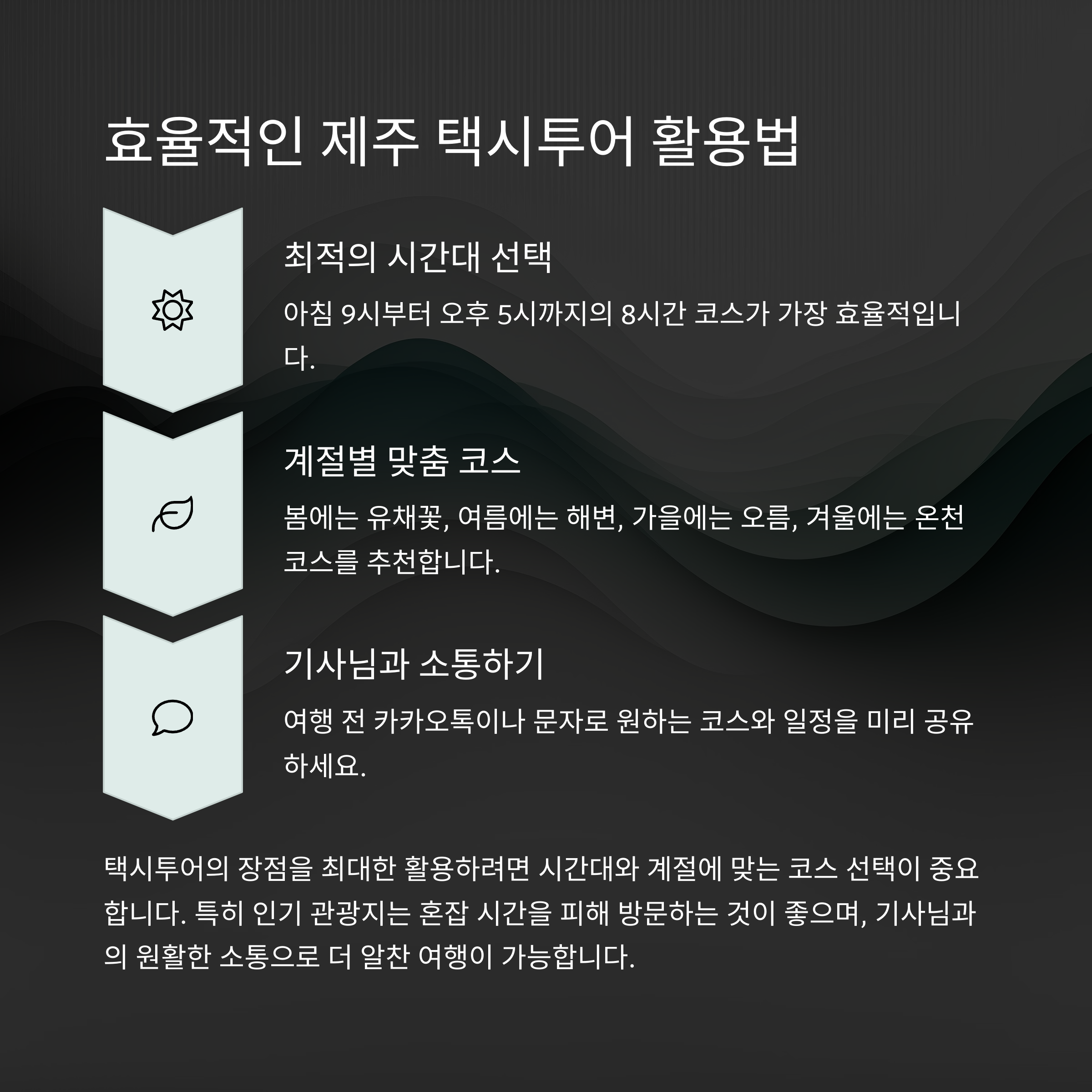 제주 택시투어는 단순한 교통수단 그 이상입니다. 현지인의 추천 코스와 맛집, 시간 효율적인 이동 방식, 그리고 정감 있는 소통까지 더해져 오직 택시투어에서만 가능한 여행 경험을 만들어줍니다. 특히 가족 단위나 운전에 부담이 있는 분들에게는 최고의 대안이 될 수 있죠. 다만 우도 접근성, 보험, 심야 시간 등 체크 포인트는 미리 확인하셔야 하며, 후기와 업체별 정보를 참고하여 자신에게 맞는 선택을 하시길 바랍니다. 올바른 준비가 최고의 여행을 만든다는 것, 잊지 마세요!