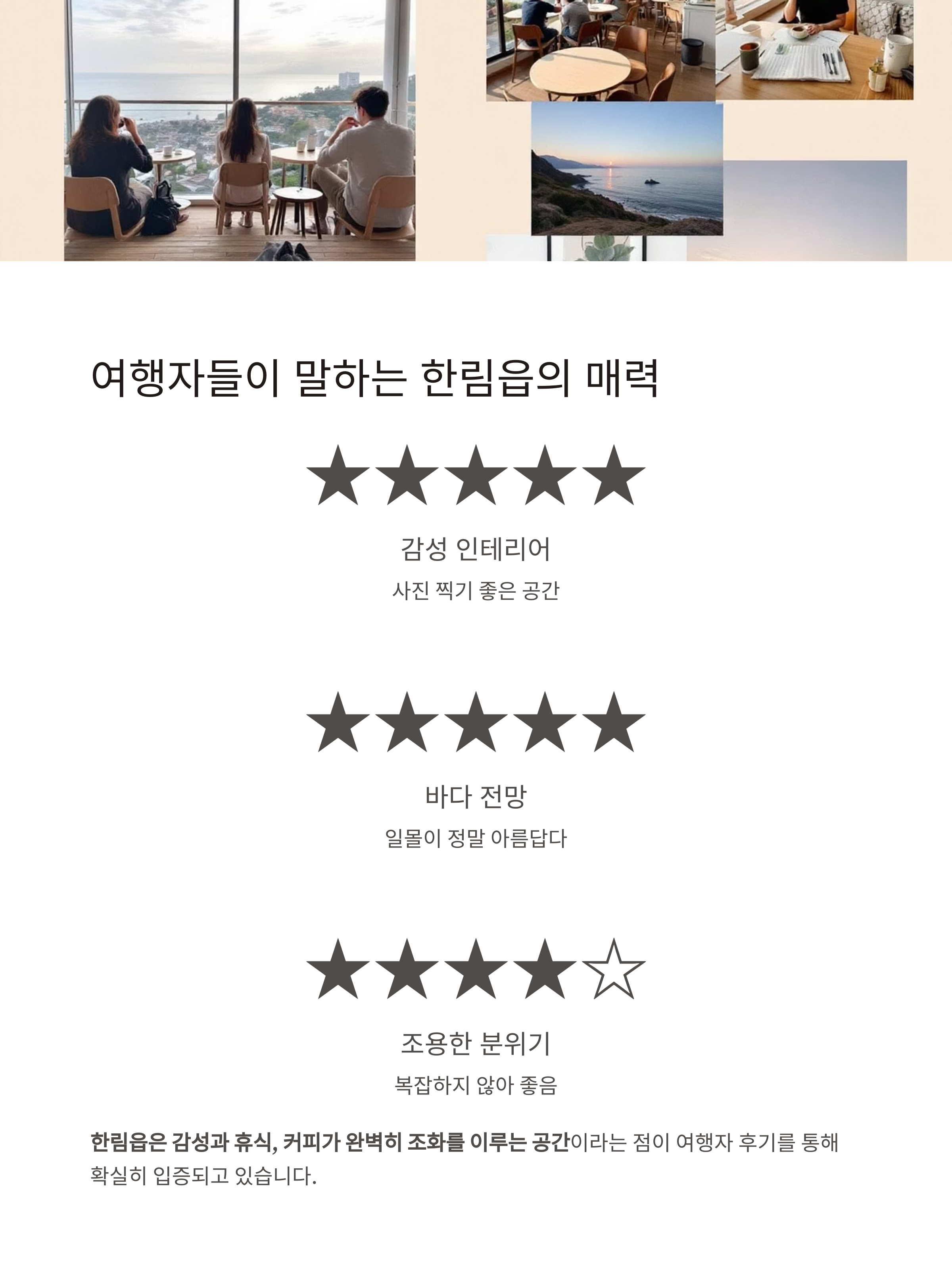 한림읍 카페 거리를 다녀간 여행자들이 공통적으로 남기는 후기를 모아보면