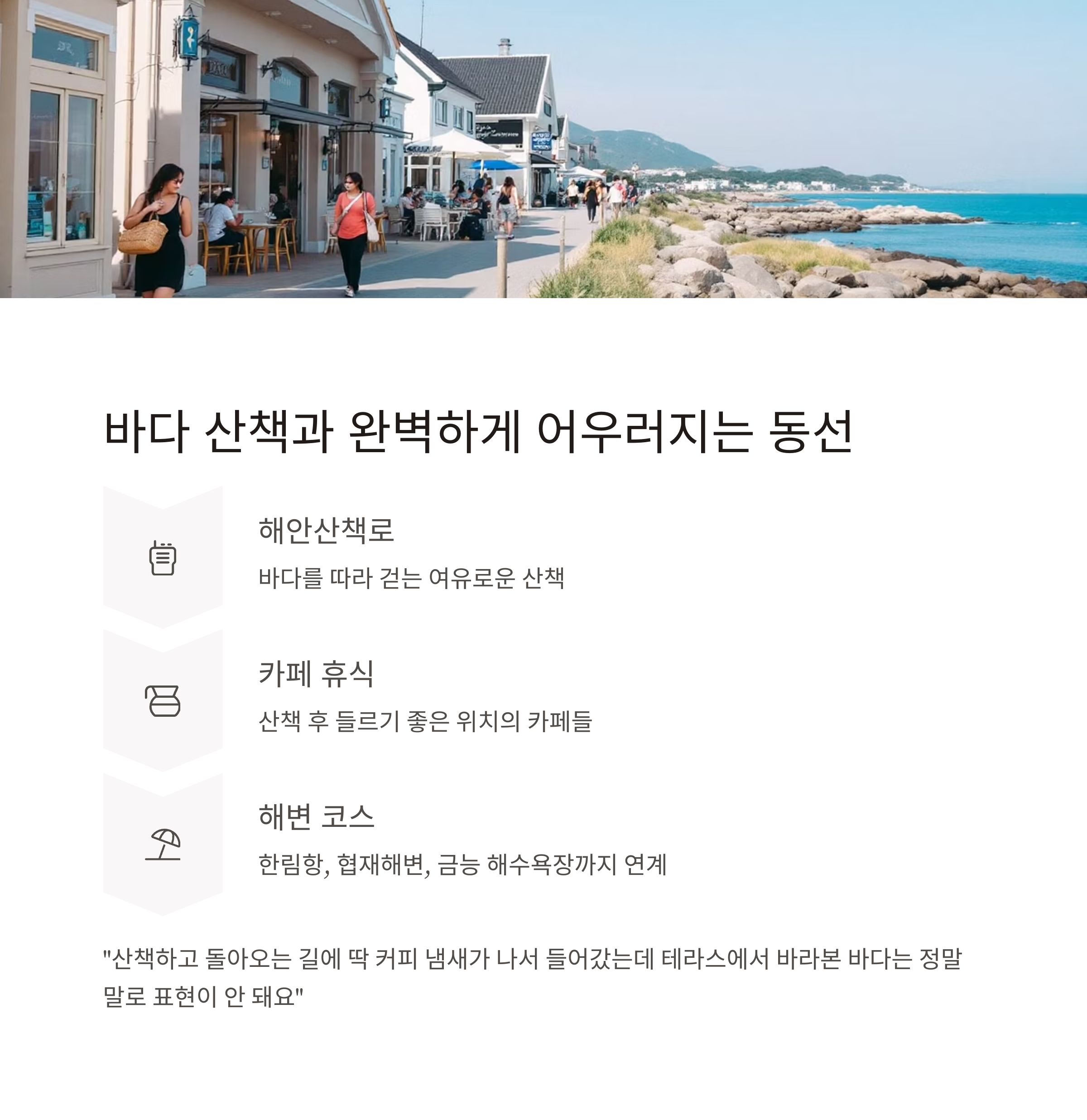 한림읍 카페 거리를 다녀간 여행자들이 공통적으로 남기는 후기를 모아보면