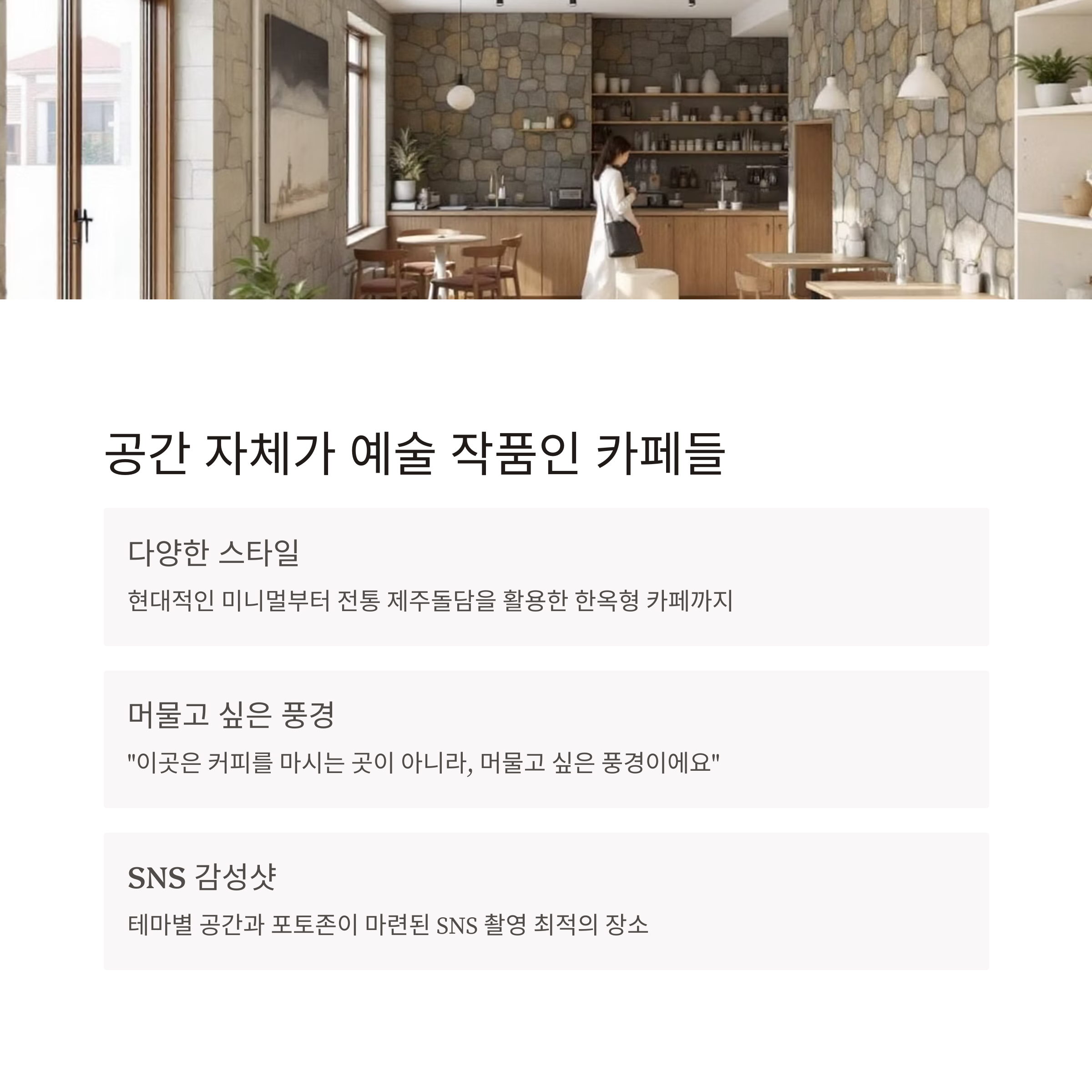 현대적인 미니멀 스타일부터 전통 제주돌담을 활용한 한옥형 카페까지,
