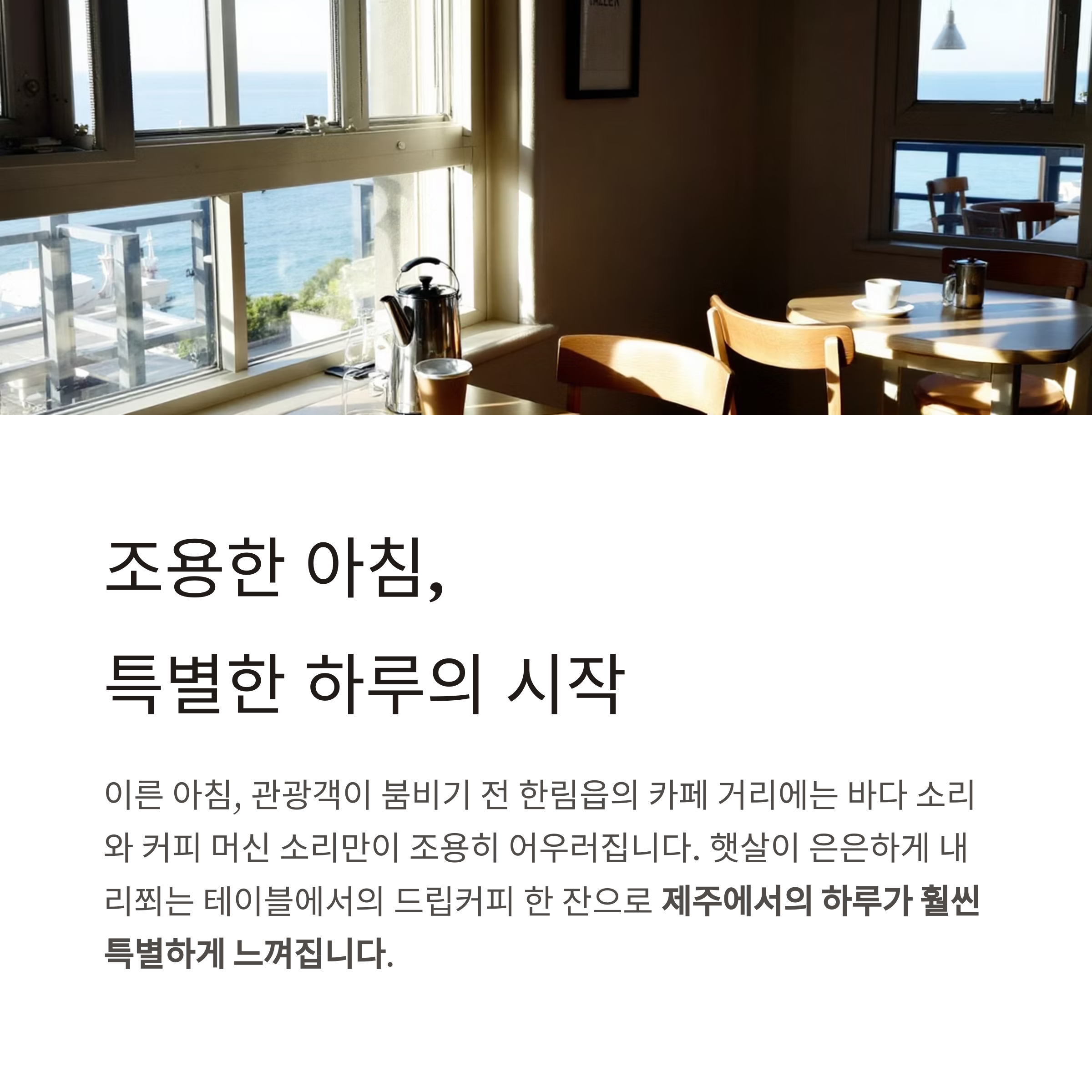 조용한 아침, 한림읍 카페 거리에서의 시작