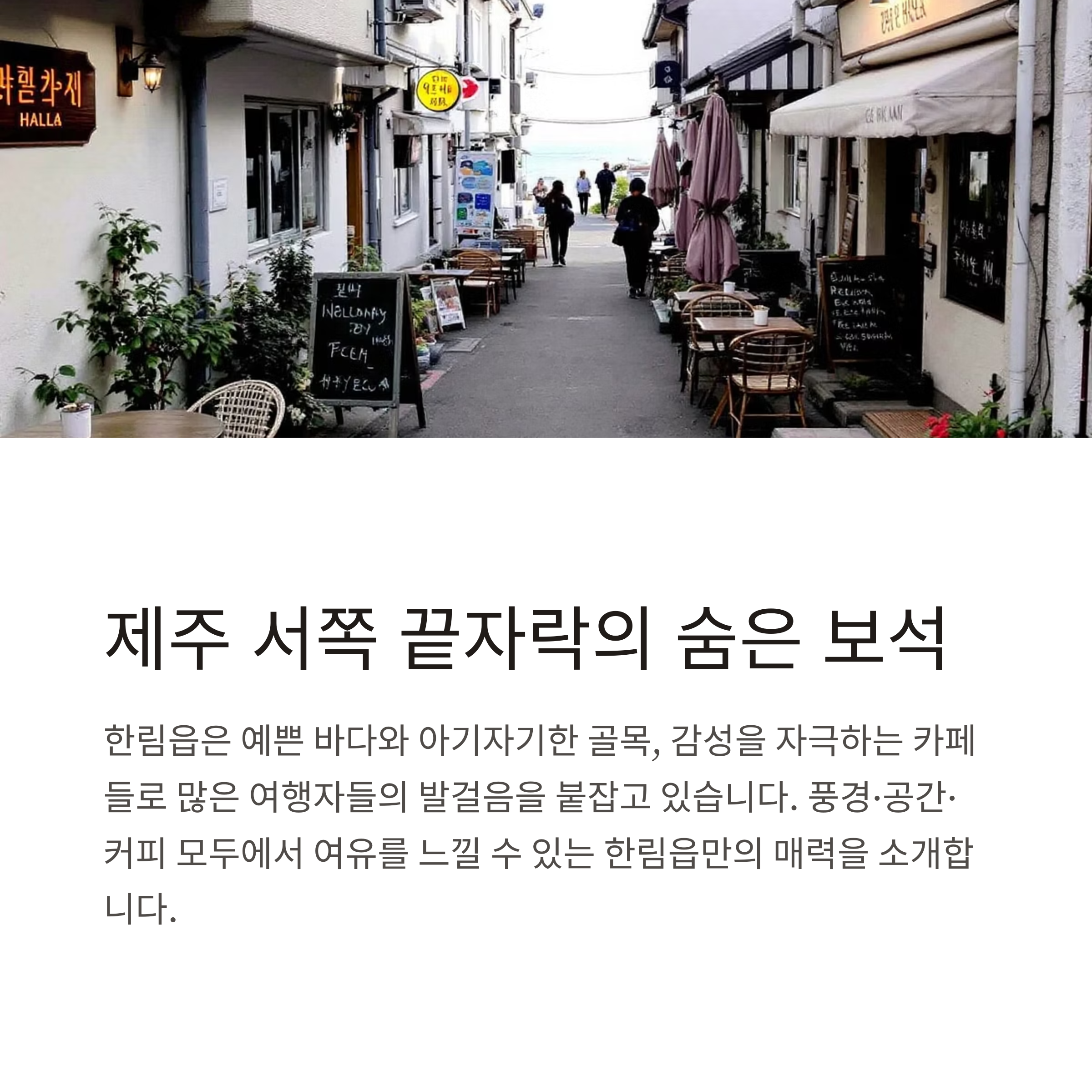 풍경·공간·커피 모두에서 여유를 느낄 수 있는 한림읍만의 매력을 소개합니다
