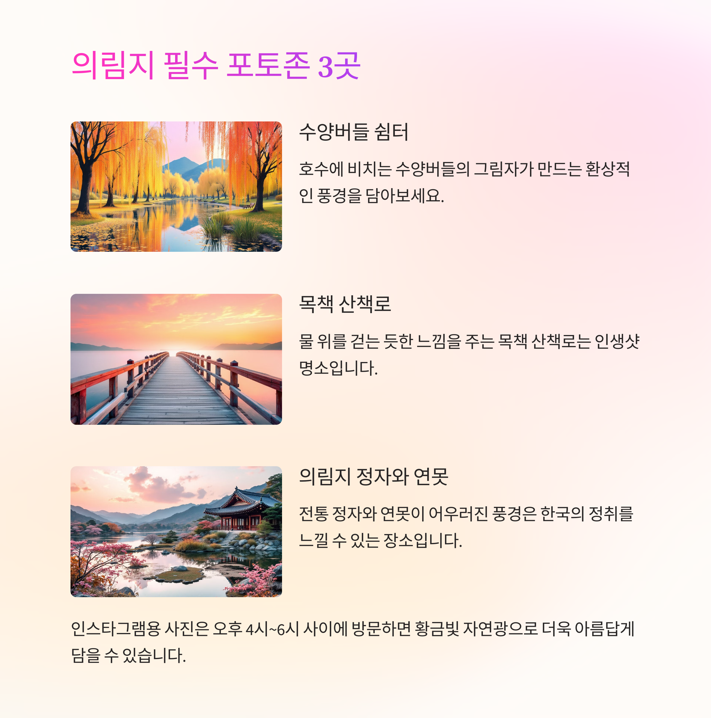 사진 찍기 좋은 포인트도 많죠. 특히 다음 3곳은 꼭 찍어야 합니다.