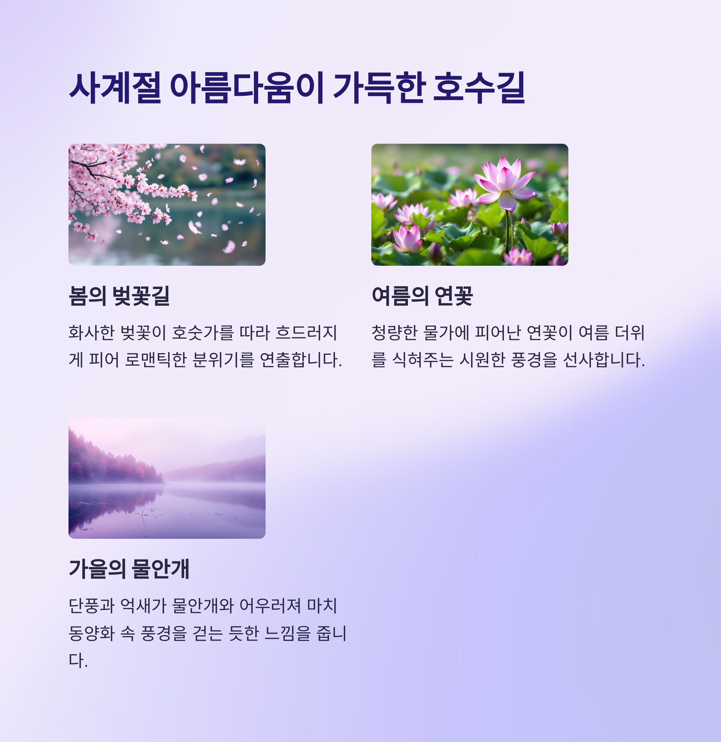 사계절 풍경이 살아 숨 쉬는 호수길