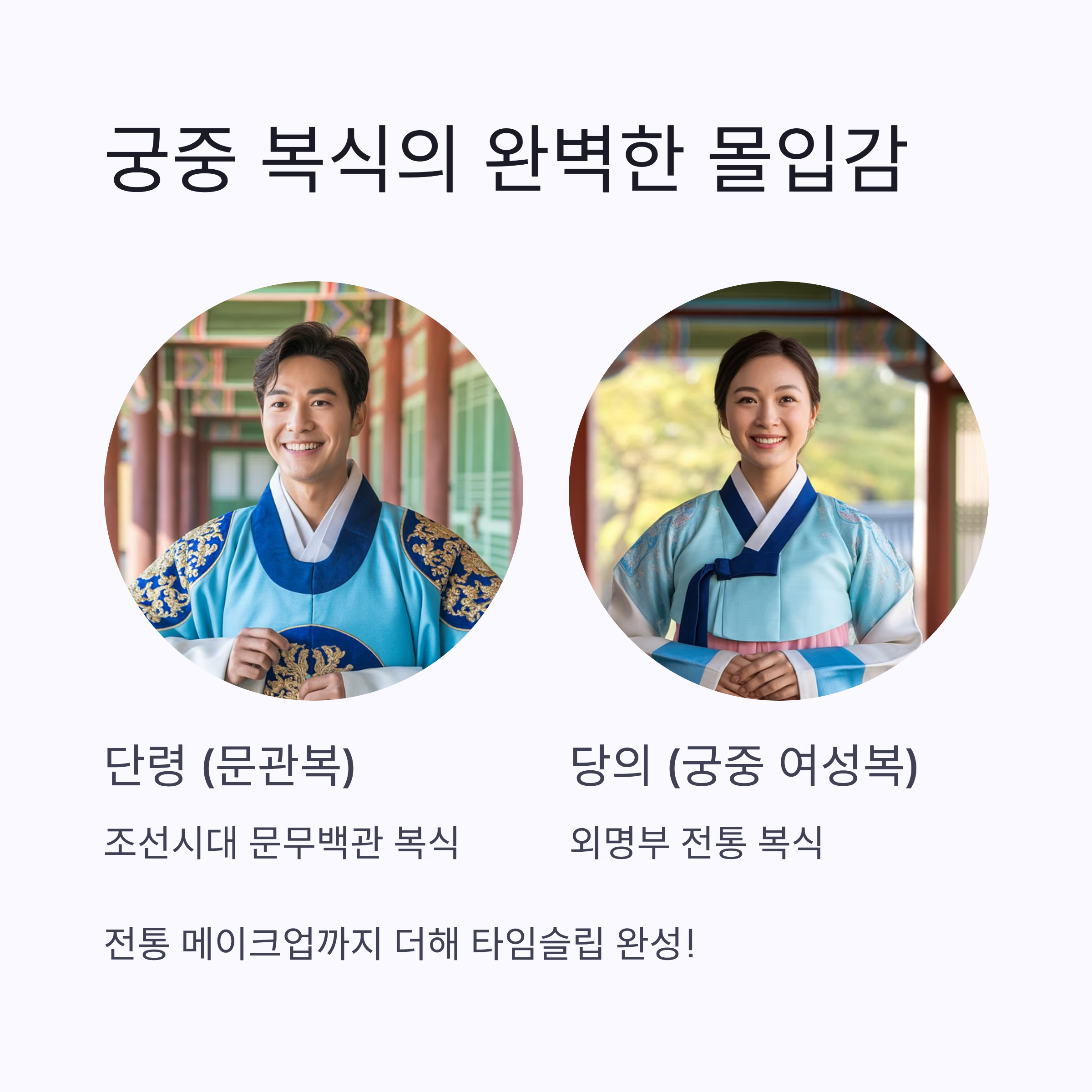 그야말로 타임슬립한 듯한 궁중의 한 장면 속 주인공이 됩니다.