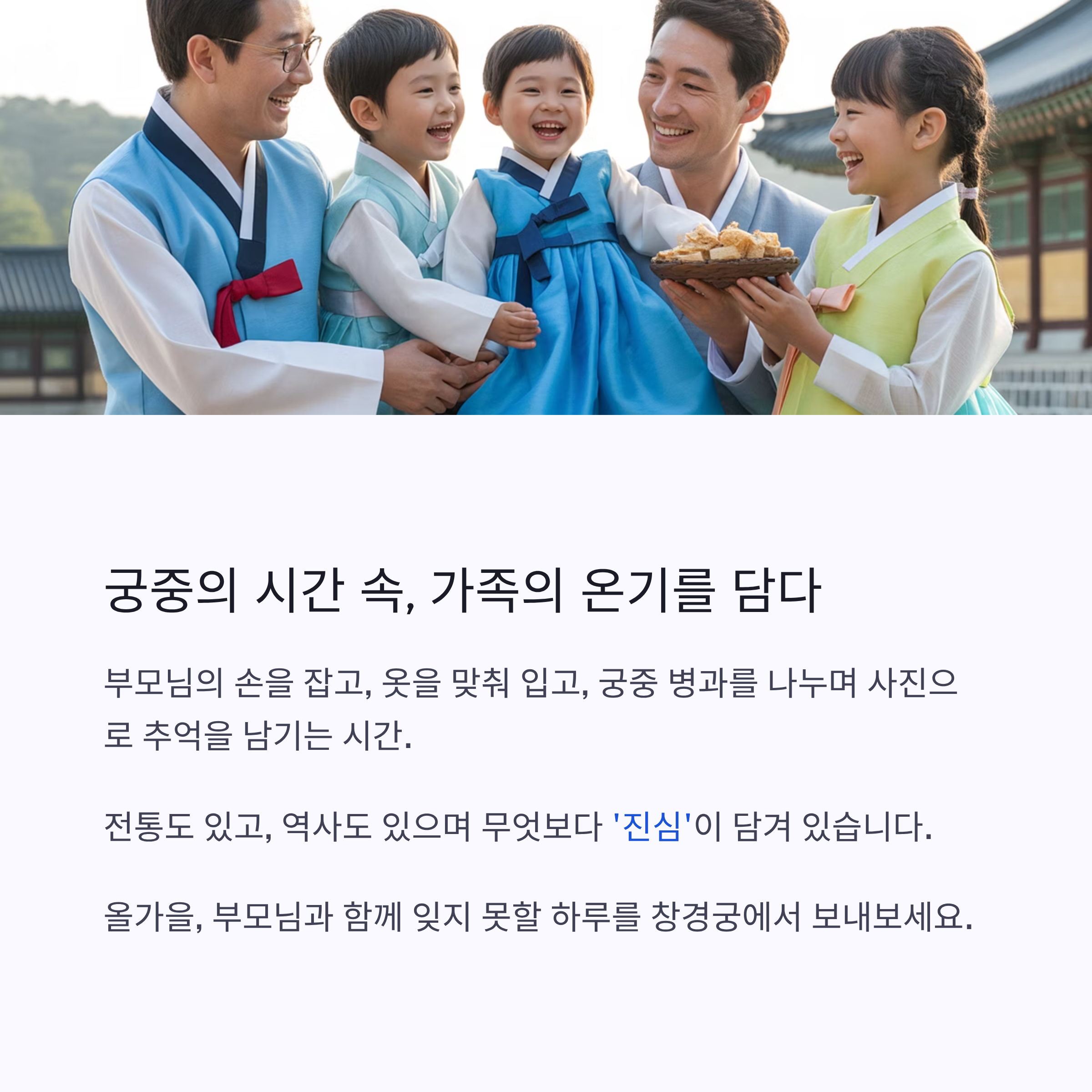 올가을, 부모님과 함께 잊지 못할 하루를 창경궁에서 보내보세요.