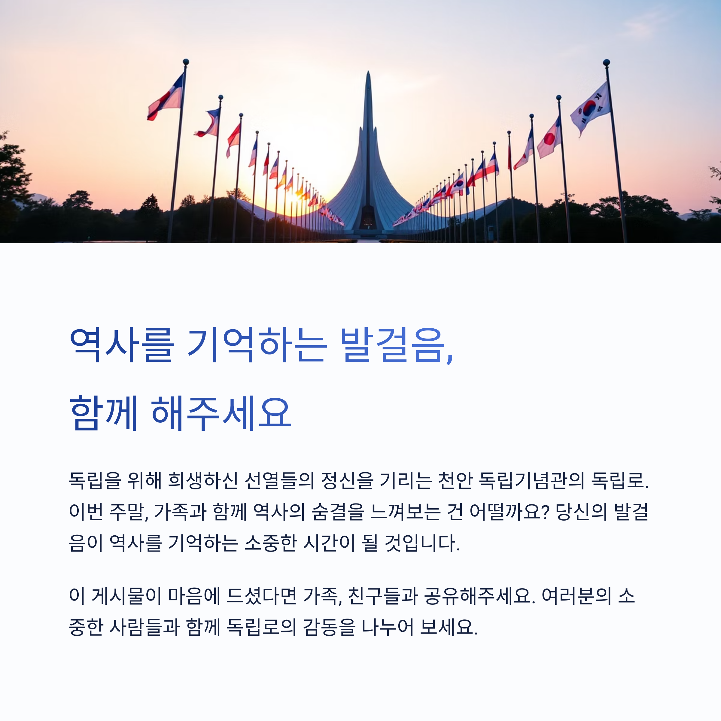 기억하며 걸을 수 있는 특별한 길입니다. 이번 글에서는 독립기념관에서