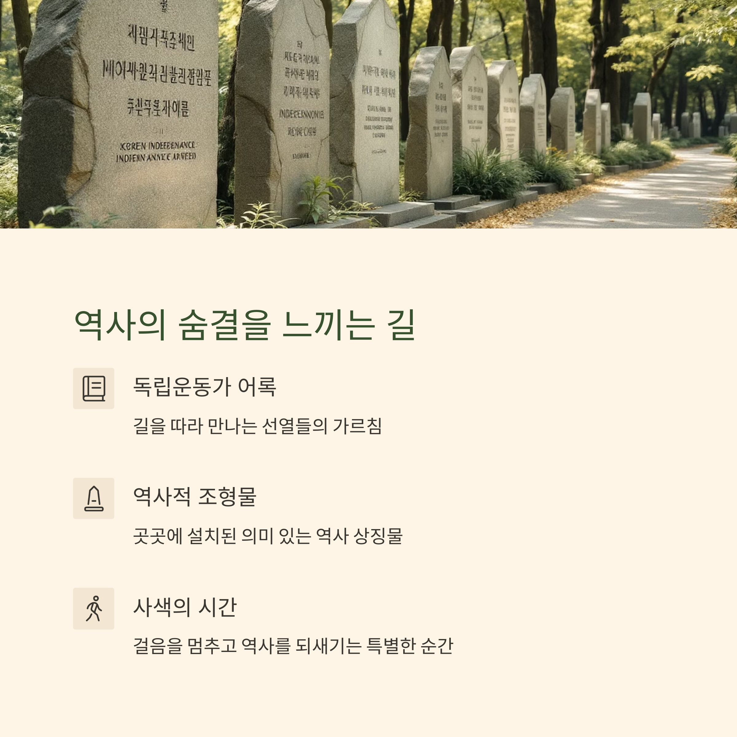 걸음을 멈추고 하나씩 읽어보면, 단순한 산책이 아닌 의미 있는 사색이 됩니다.