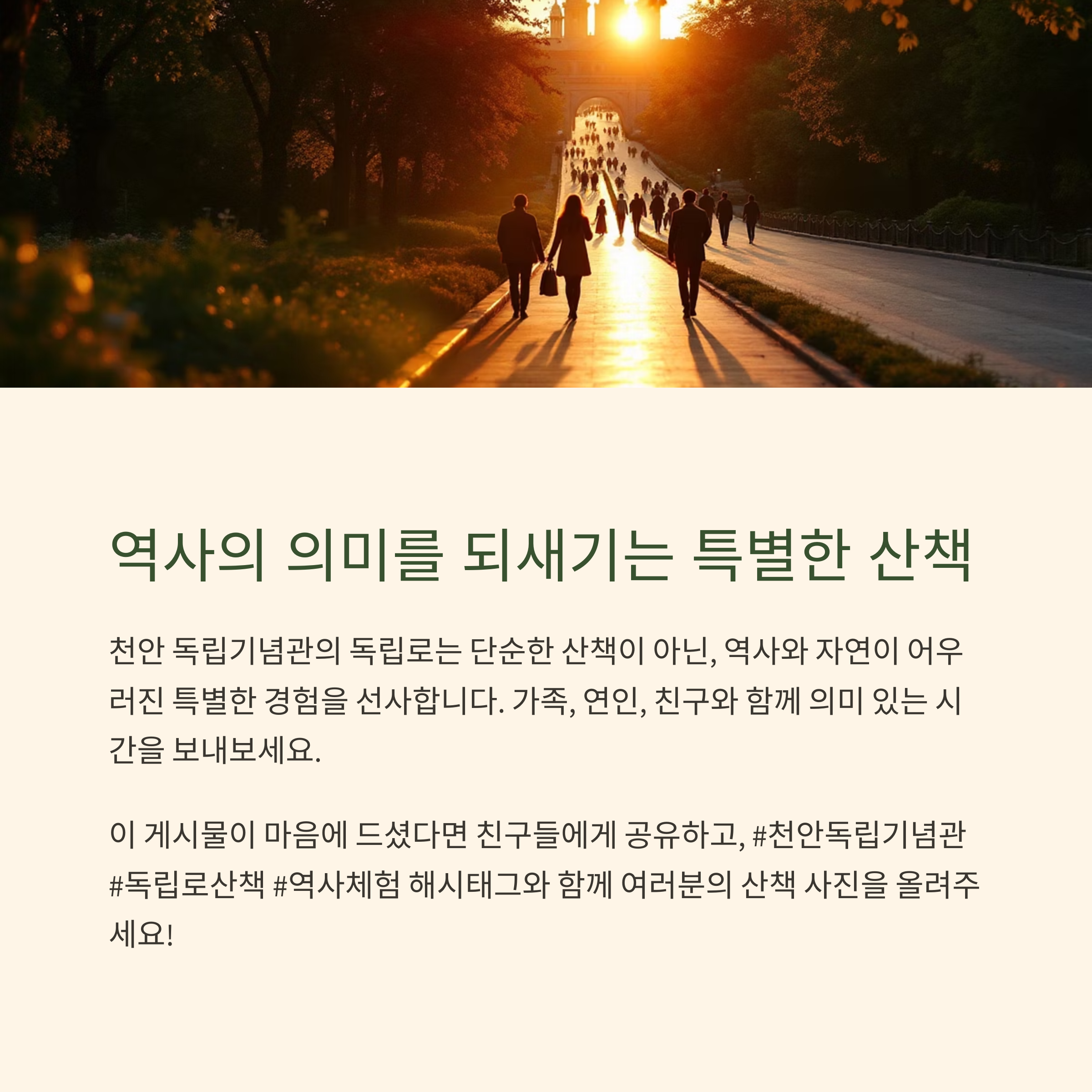 독립기념관 입구부터 시작되는 상징적 출발