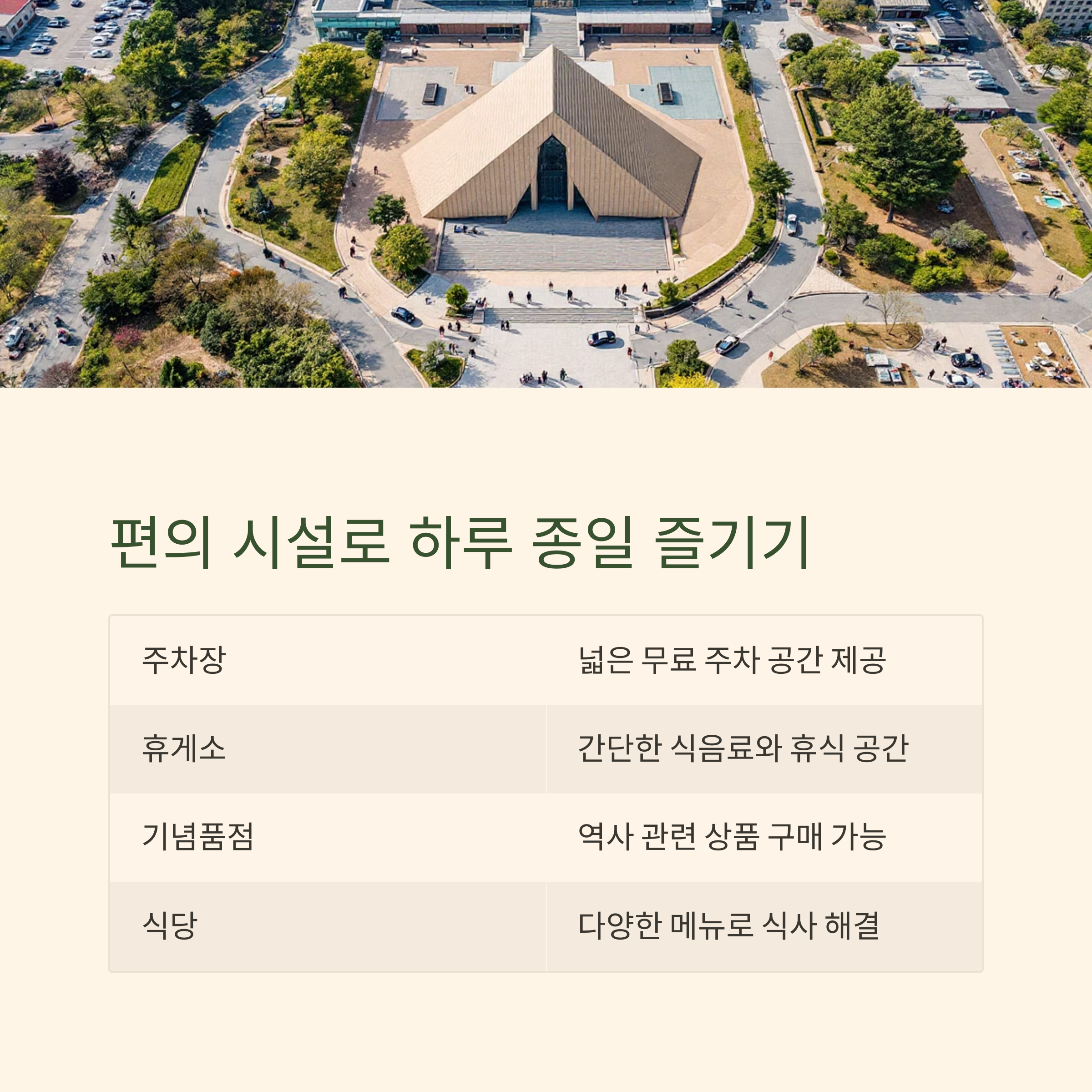 | 기념품점 | 역사 관련 상품 구매 가능 |