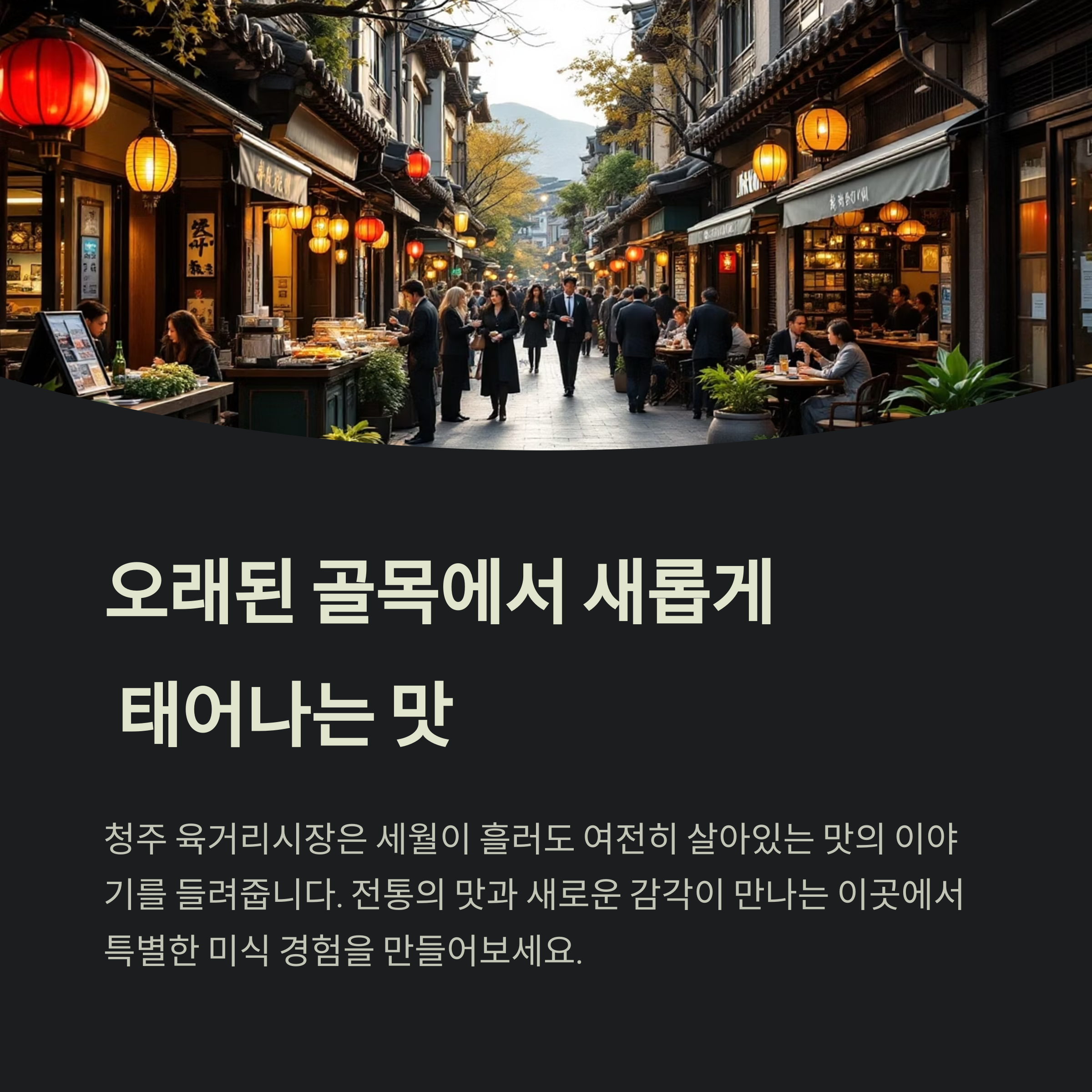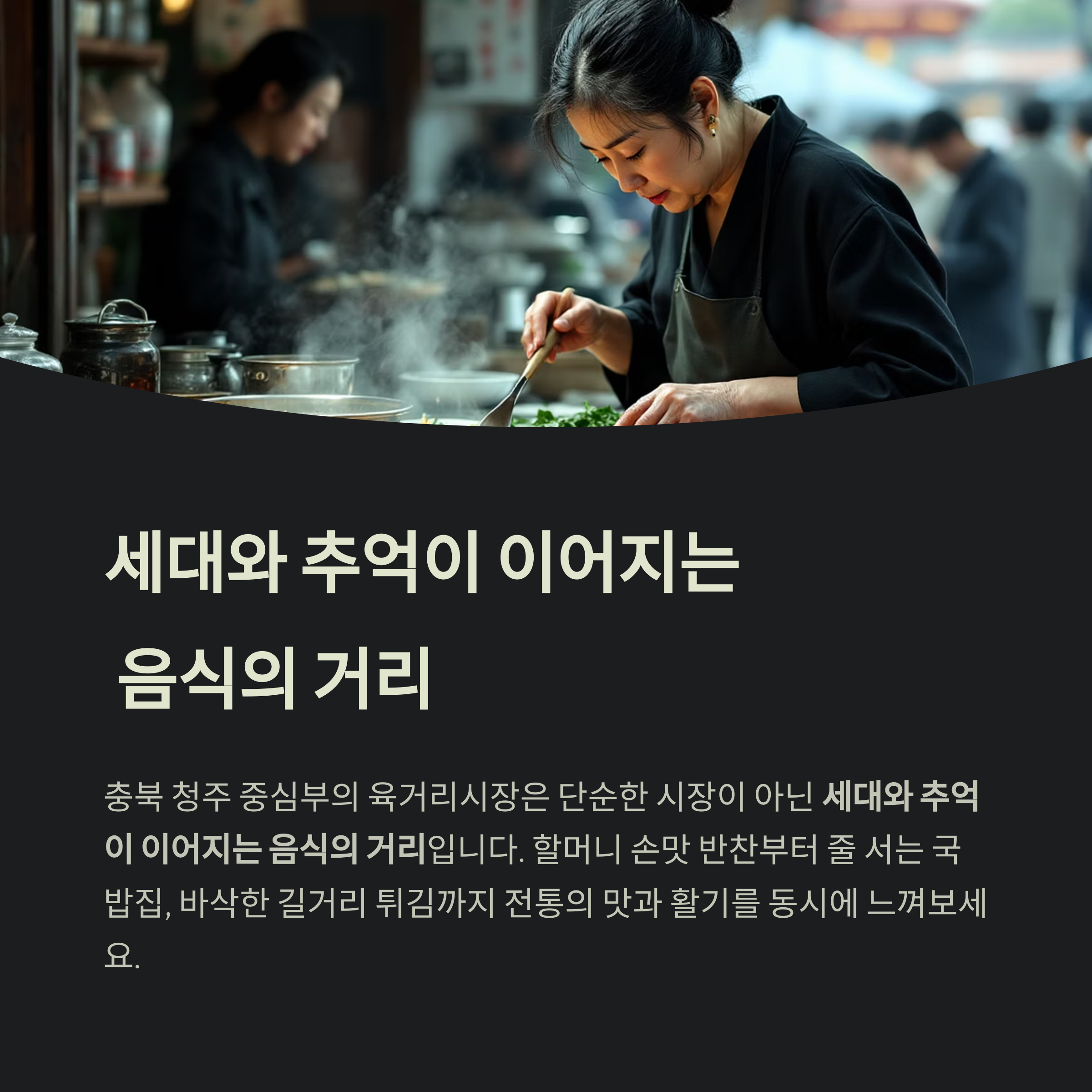 충북 청주의 중심부에 위치한 **육거리시장은 단순한 시장이 아닌 ‘세대와 추억이 이어지는 음식의 거리’**입니다.
