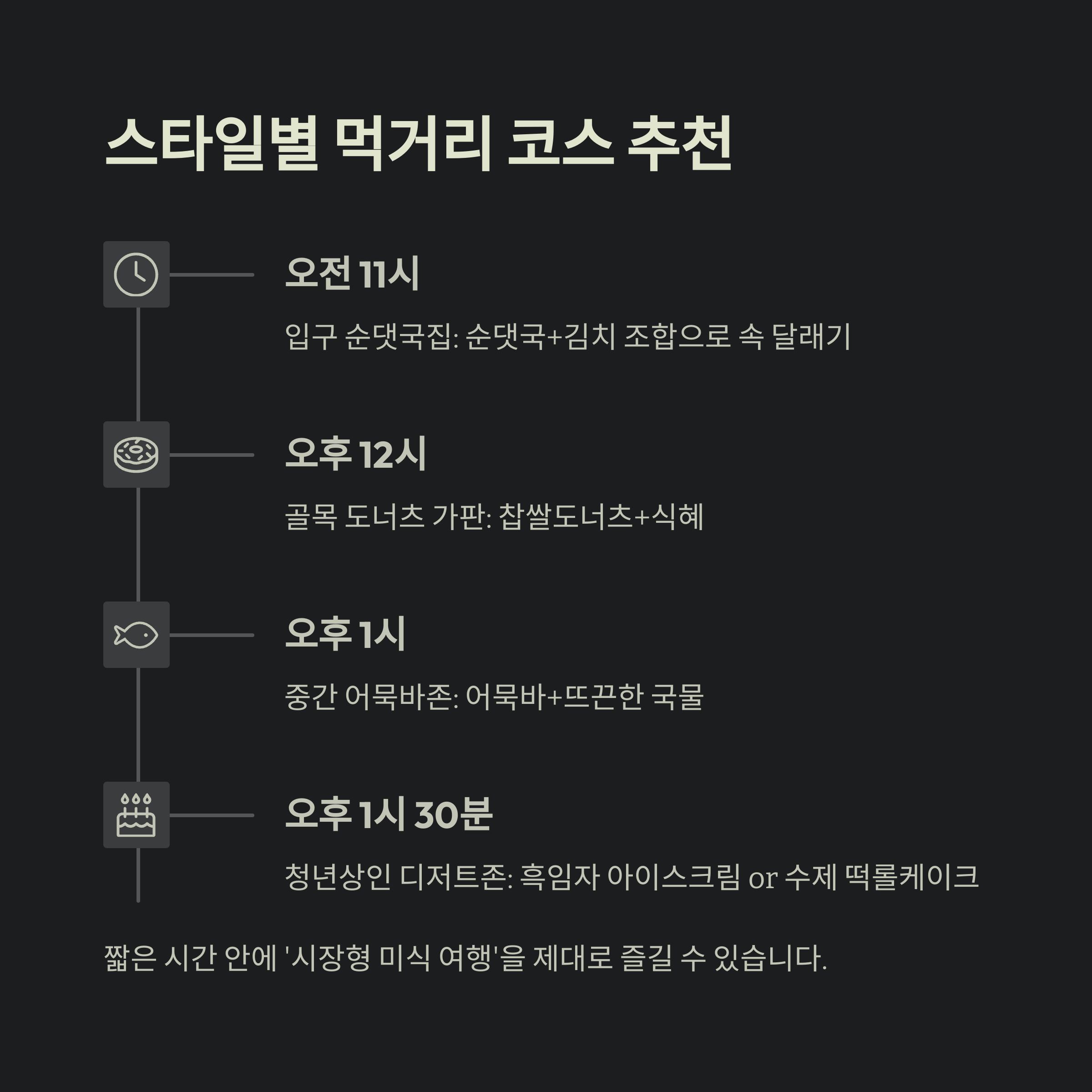 짧은 시간 안에 ‘시장형 미식 여행’을 제대로 즐길 수 있습니다.