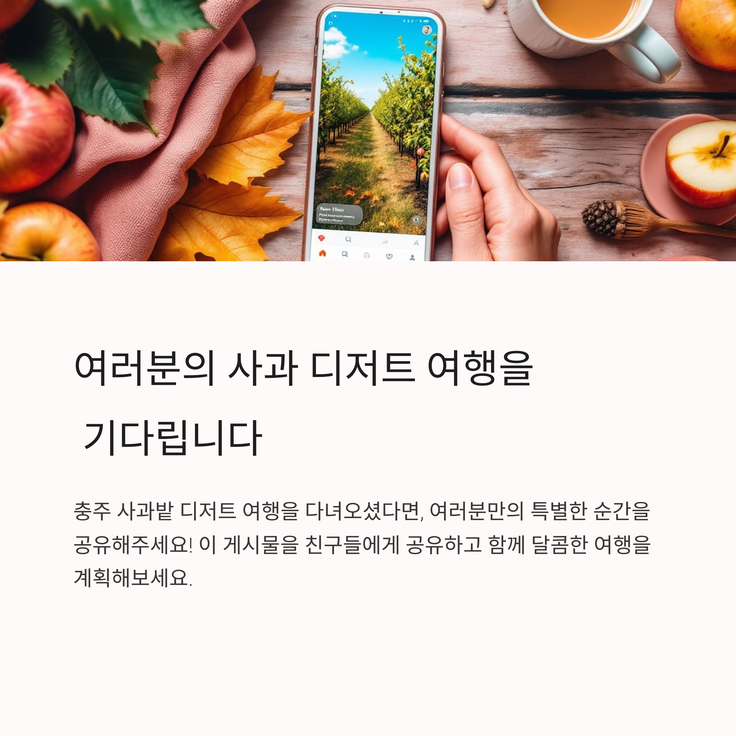 "우리는 충주 사과축제를 보러 왔다가 우연히 사과밭 카페에 들렀어요.