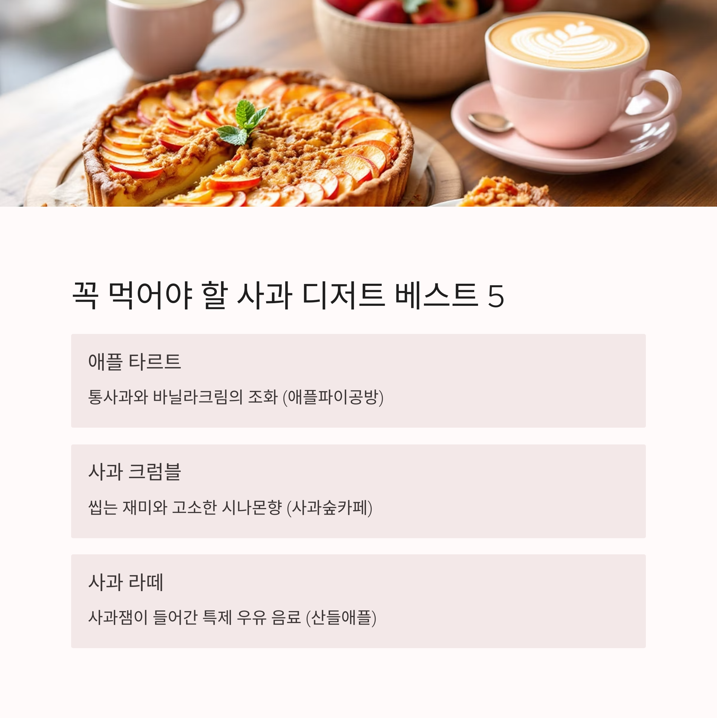 사과를 베이스로 한 대표 디저트 메뉴는 다음과 같습니다.