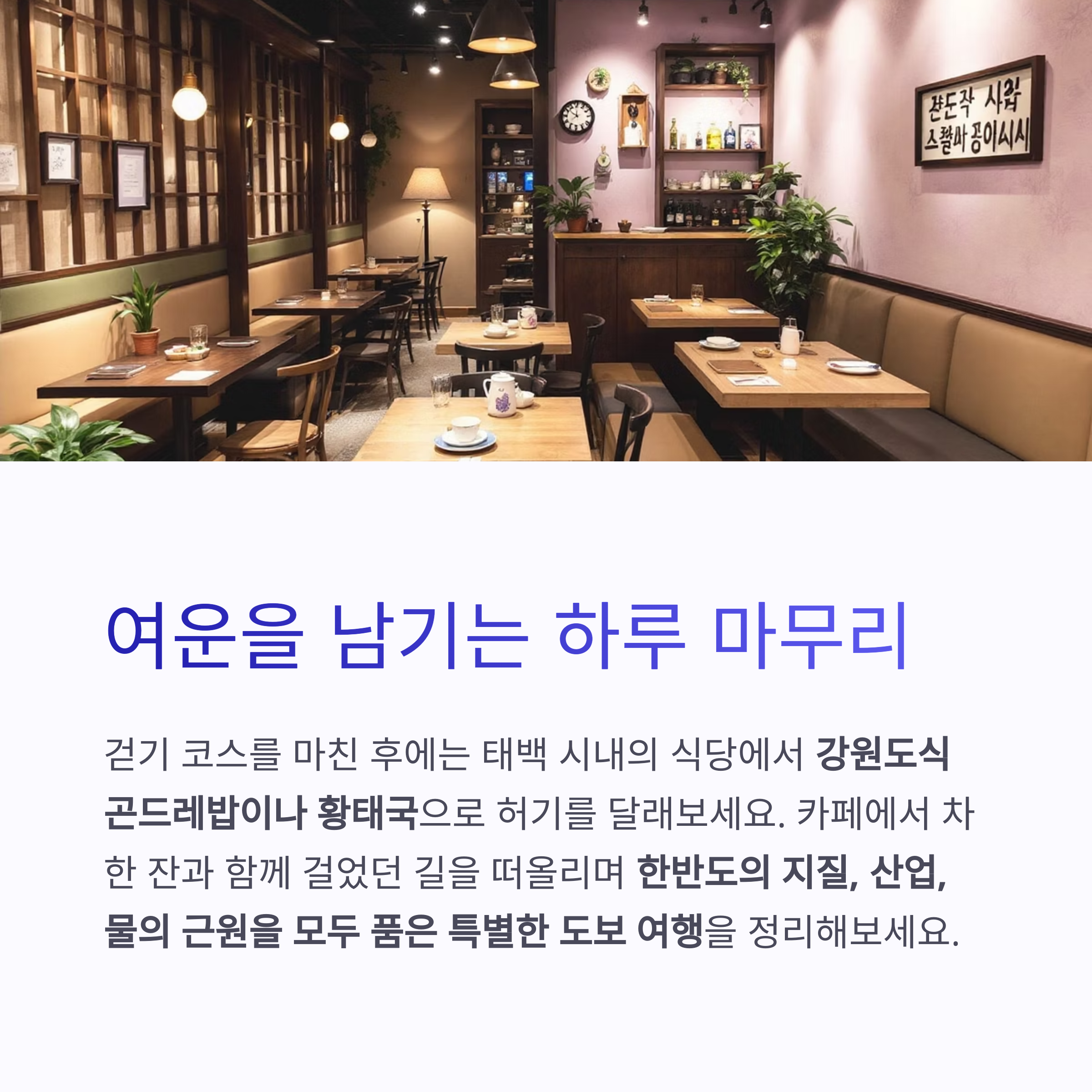 과거 탄광 도시였던 태백의 삶과 자연을 동시에 느낄 수 있는 특별한 경험을 제공합니다.