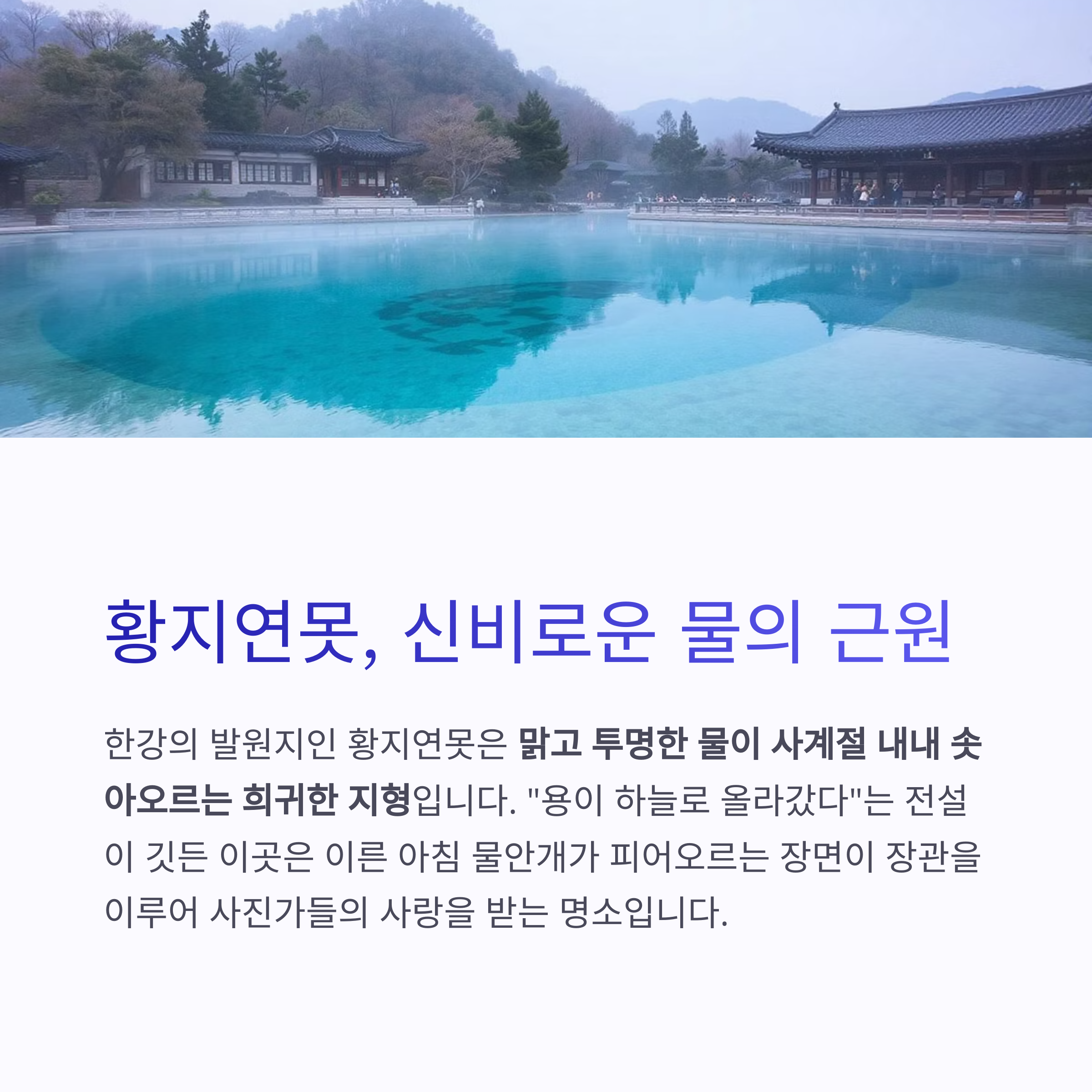 황지연못 도착점 (3.5km) 한강의 발원지, 맑은 연못과 산책로