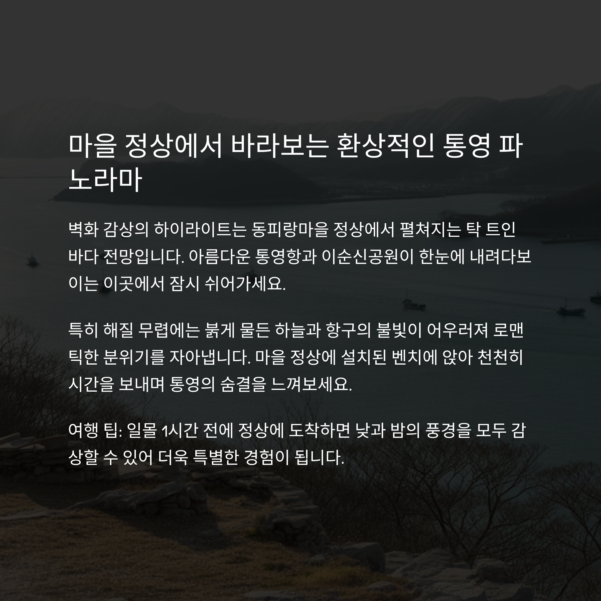 정상부 근처 통영 풍경 바다와 벽화가 어우러지는 장면
