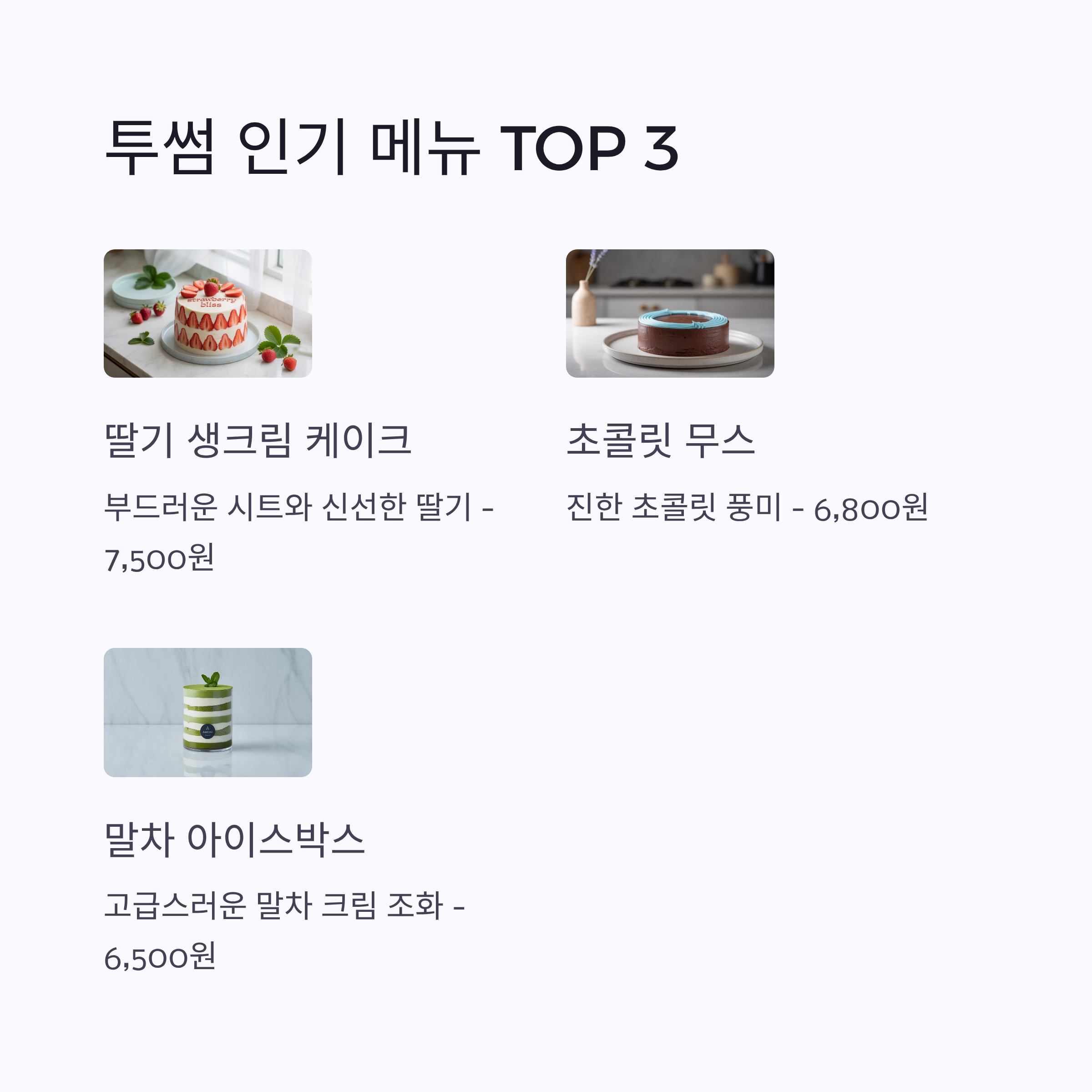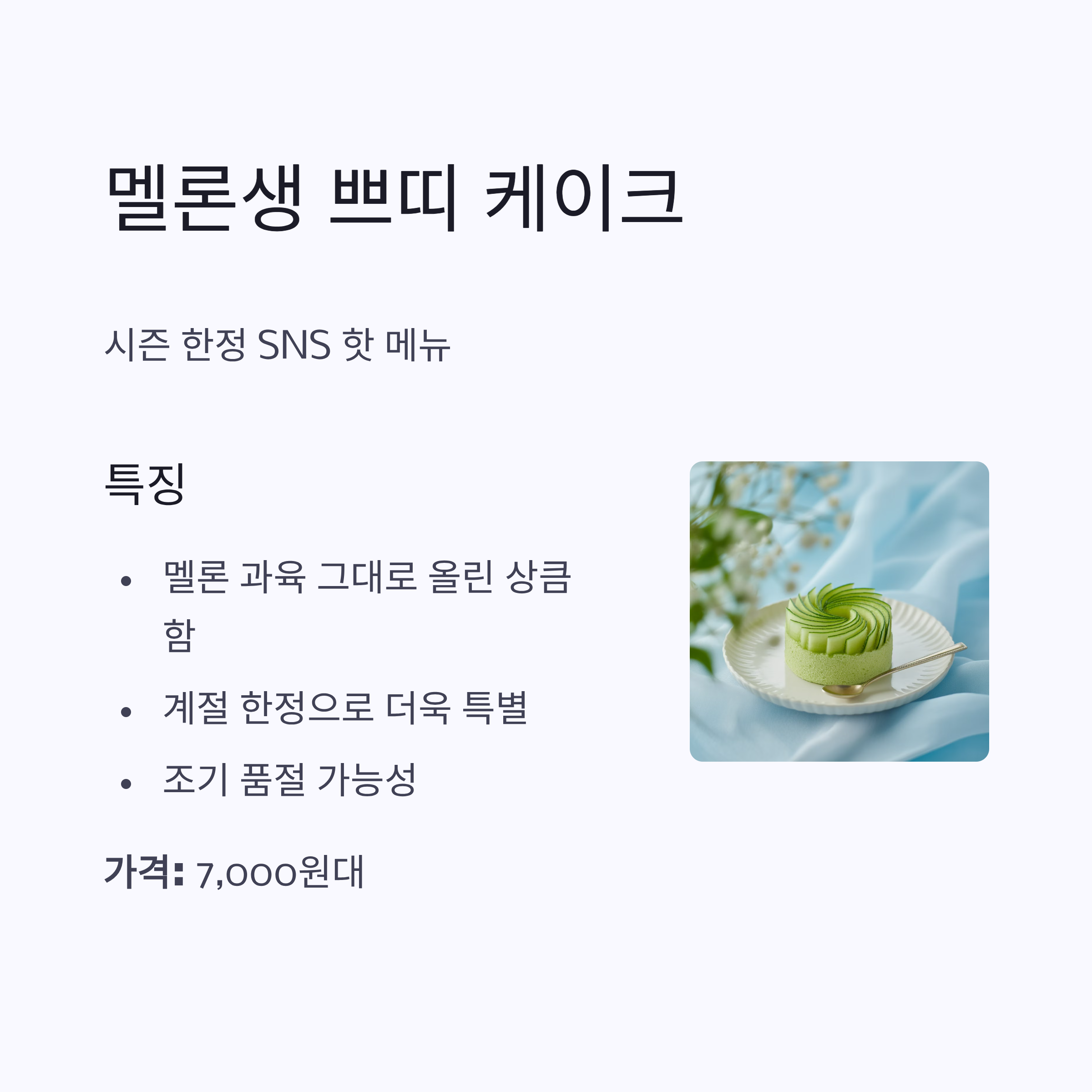 투썸은 계절마다 새로운 케이크를 출시하니, 시즌 한정 메뉴는 수시로 확인하는 게 좋아요. 특히 봄엔 딸기, 여름엔 멜론, 가을엔 무화과 같은 제철 과일을 활용한 제품이 자주 나오죠.