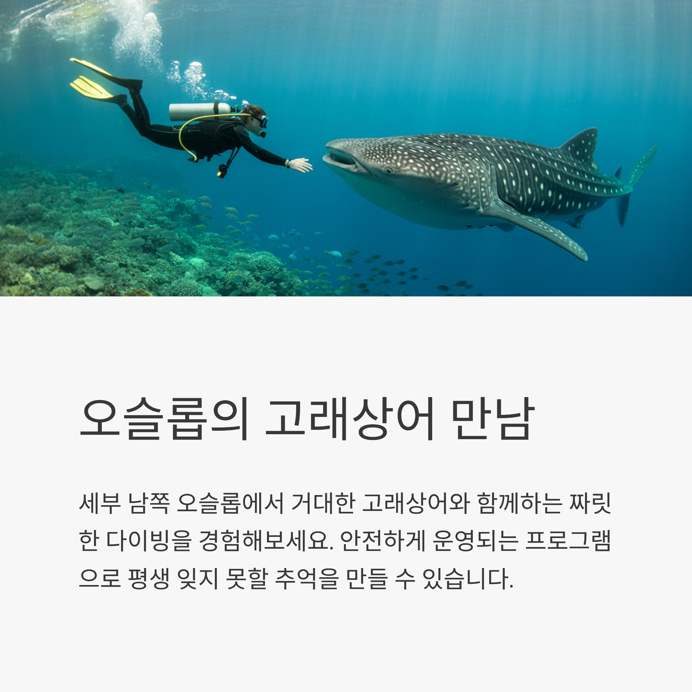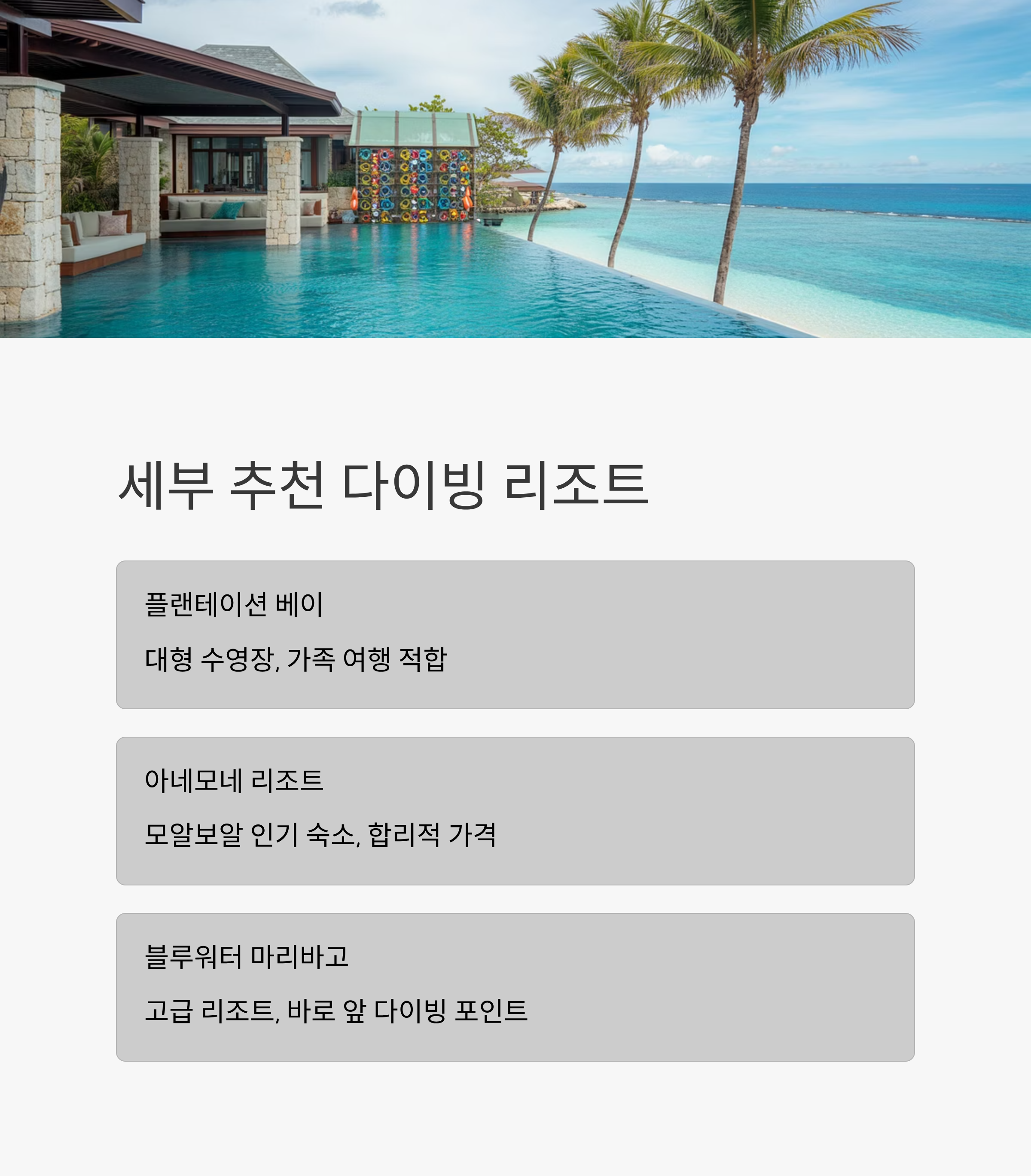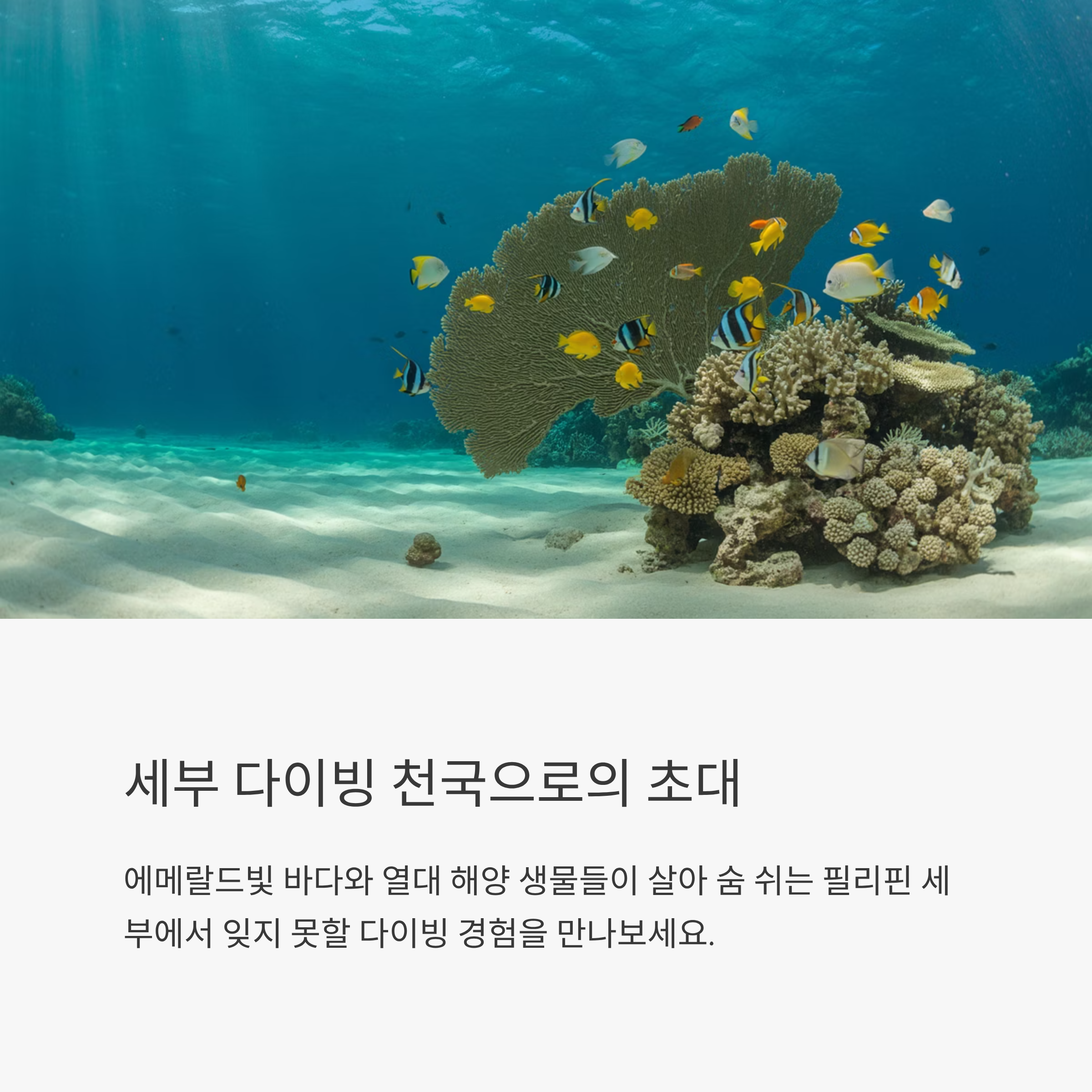 세부에서 즐기는 천국 같은 다이빙과 럭셔리 리조트 휴양은 어떤가요?