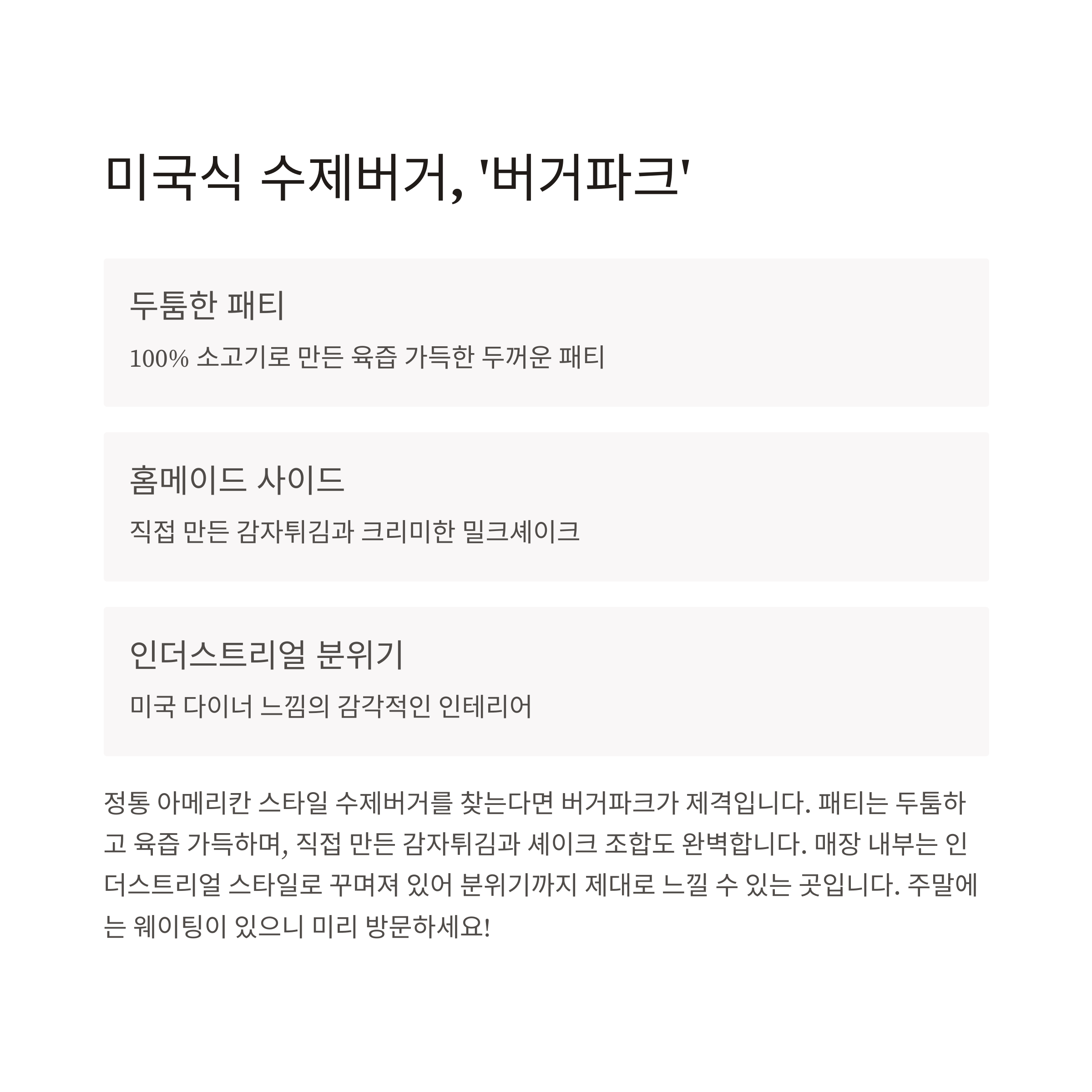 정통 아메리칸 스타일 수제버거를 찾는다면