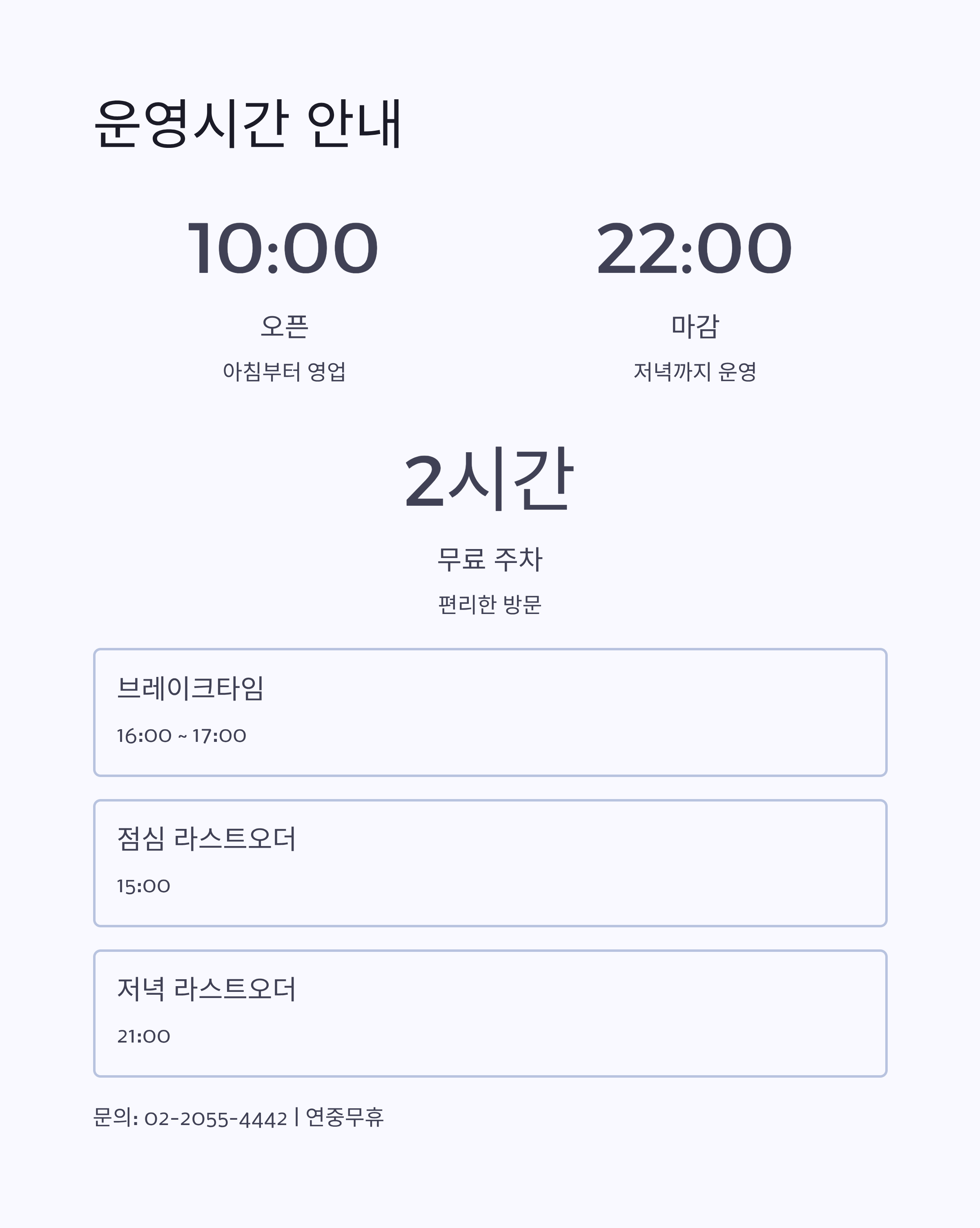 방문 계획이 있다면 운영 시간도 체크해 주세요.