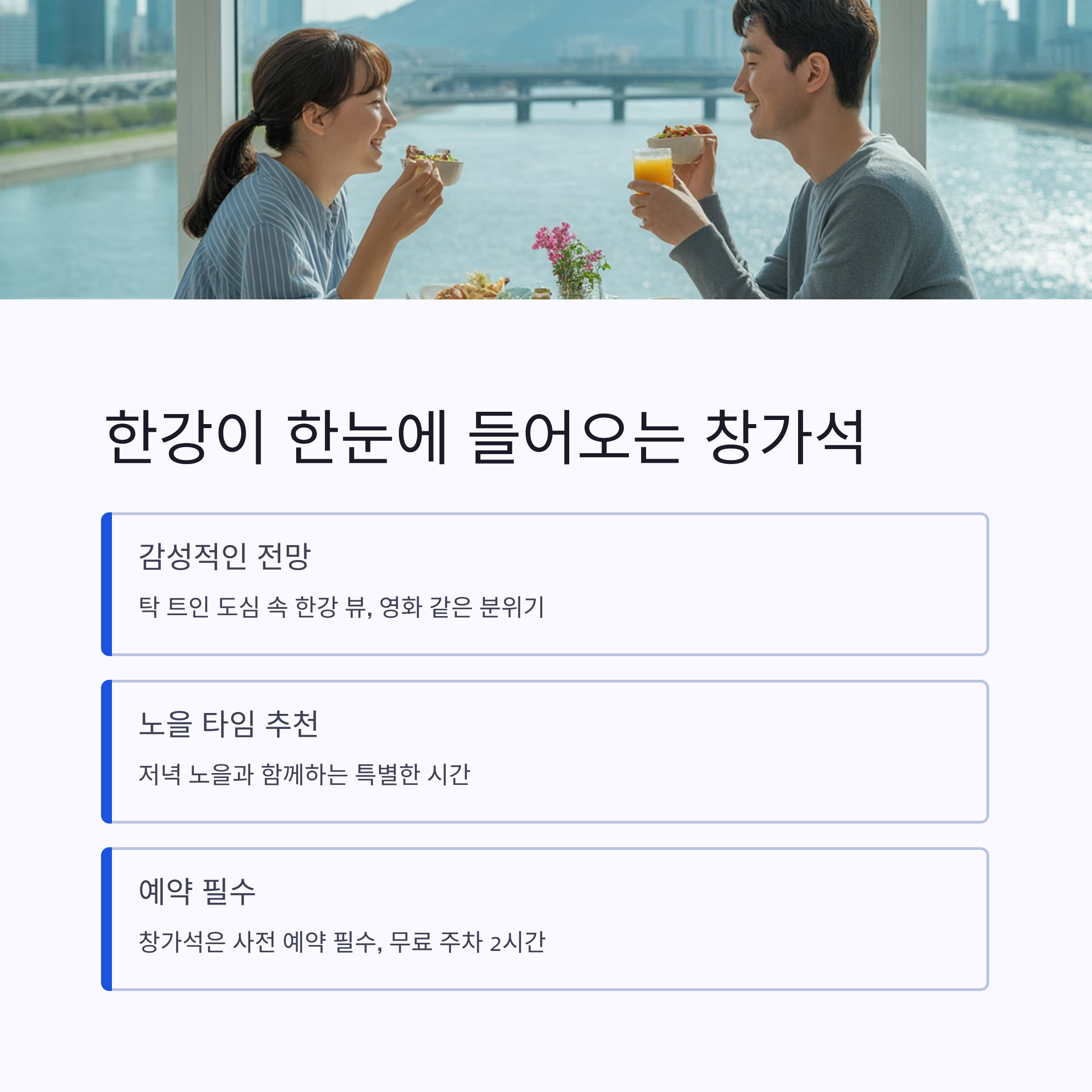 세상의 모든 아침의 가장 큰 매력은 바로 한강이 훤히 내려다보이는 창가석입니다.