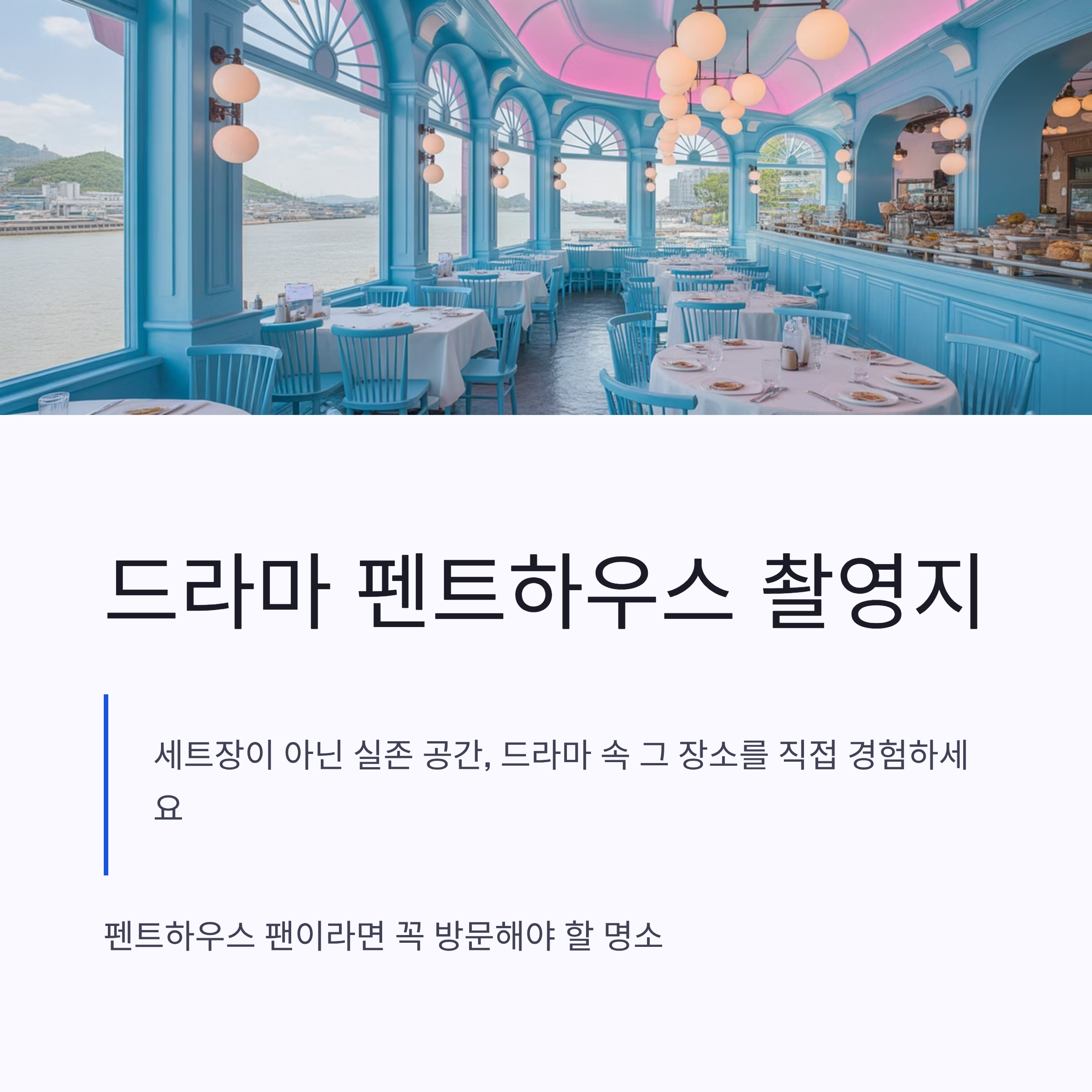 드라마 펜트하우스의 촬영 장소로도 알려져 있어, 방문 자체가 특별한 추억이 되는 곳이에요.