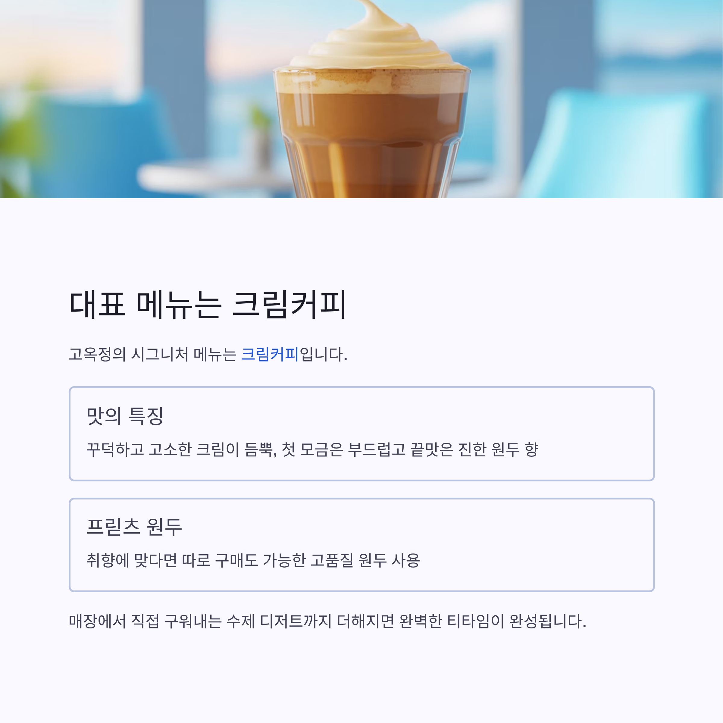 대표 메뉴는 크림커피