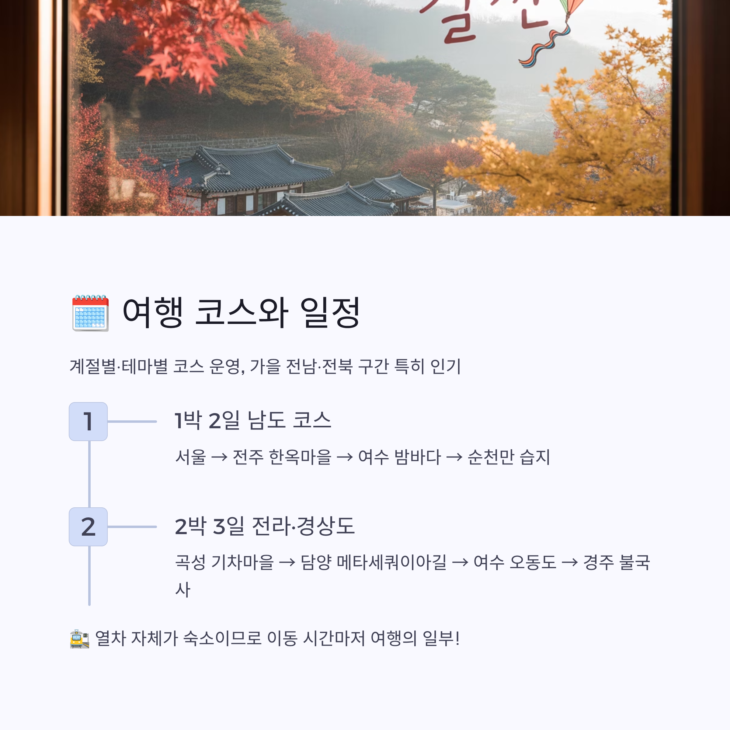 ✔ 가을 단풍철에는 전남·전북 코스가 특히 인기
