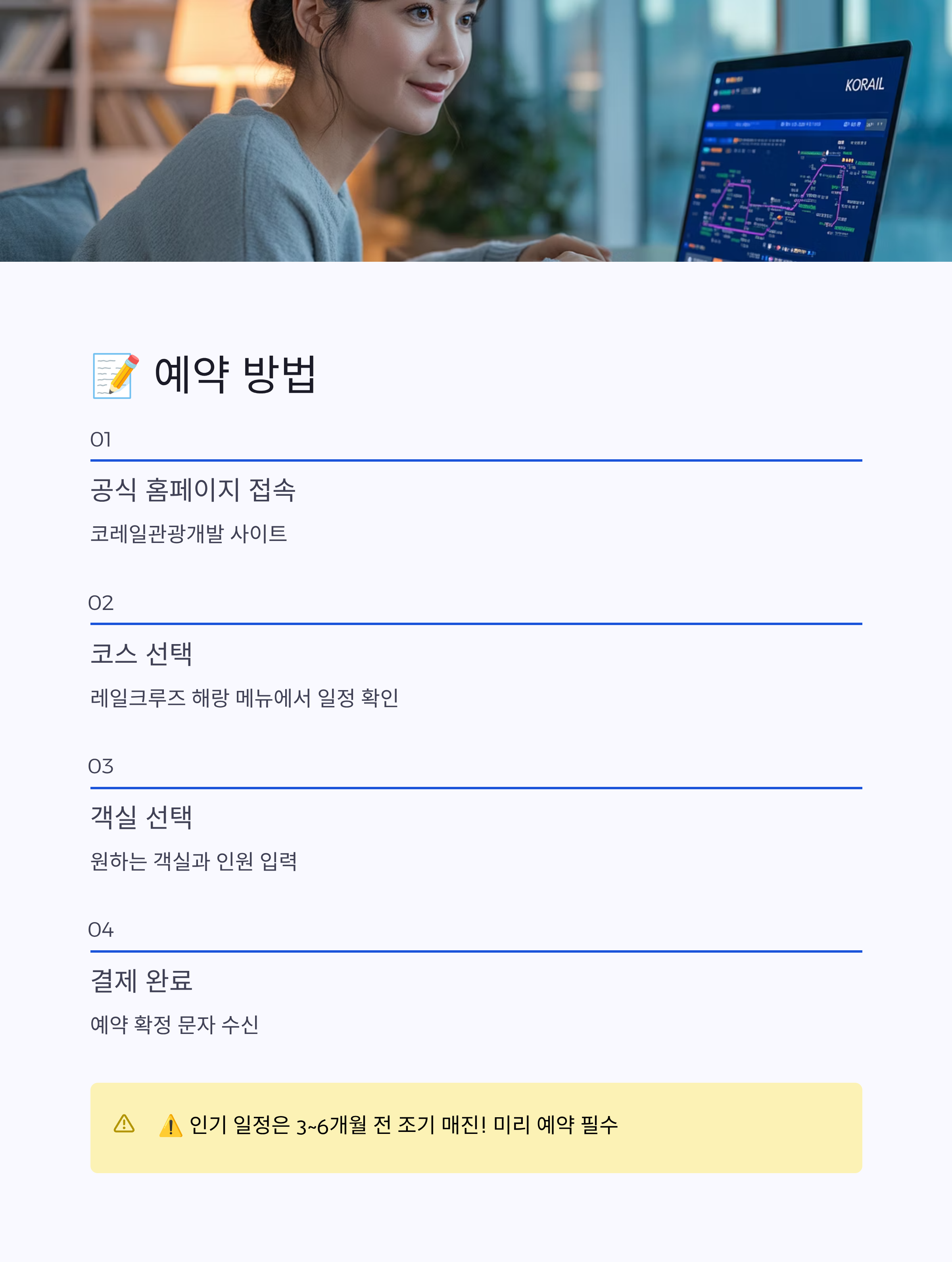 - ‘레일크루즈 해랑’ 메뉴 선택 후 일정·코스 확인
