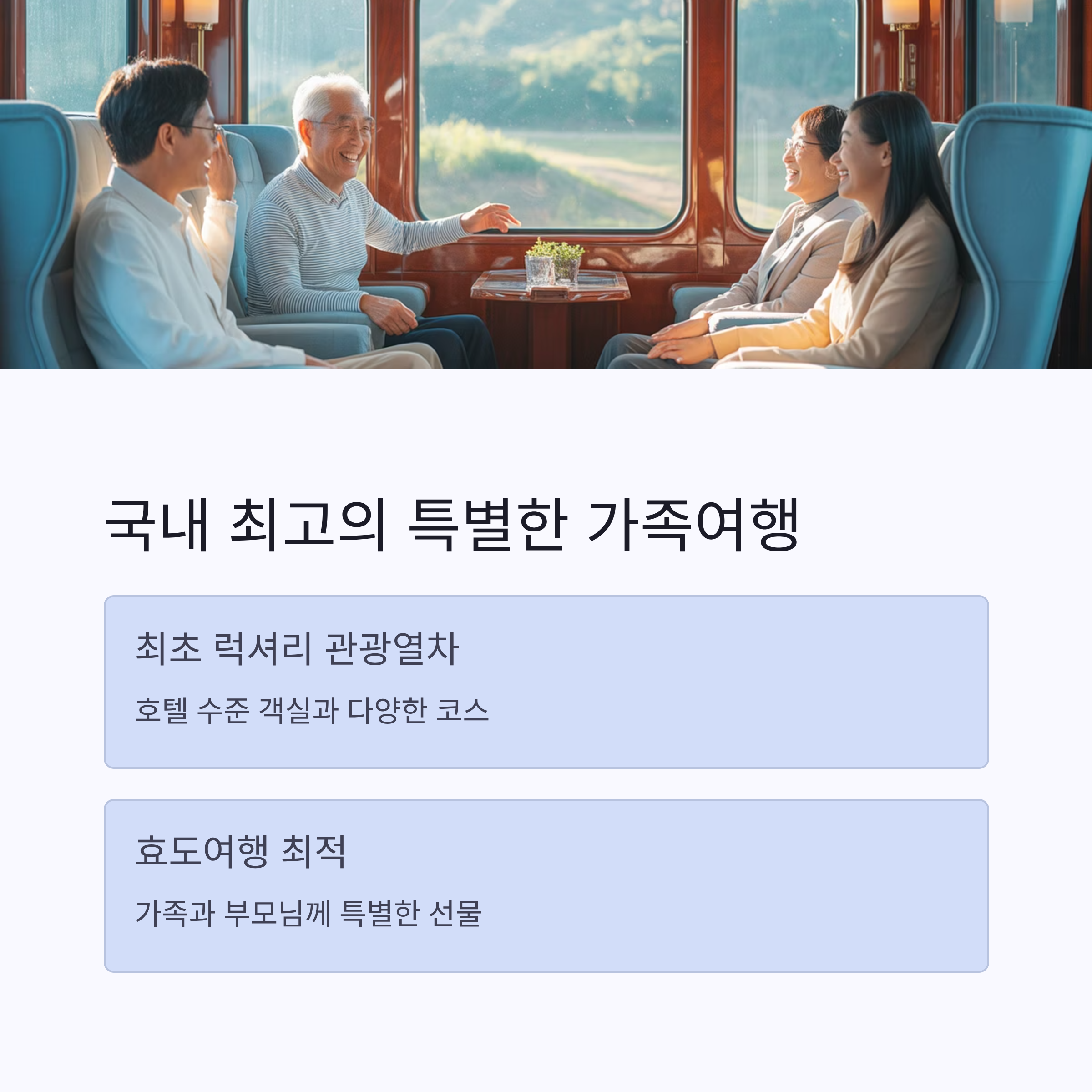 국내에서 특별한 가족여행이나 효도여행을 계획한다면 해랑열차만큼 매력적인 선택지가 없어요. ‘레일크루즈 해랑’은 우리나라 최초의 럭셔리 관광전용열차로, 호텔 수준의 객실과 다양한 여행 코스를 갖추고 있어요. 이번 글에서는 해랑열차의 가격, 예약 방법, 추천 코스, 후기까지 한눈에 정리해 드릴게요. 가족과 부모님을 모시고 떠나는 여행, 그리고 특별한 기념일에 더욱 어울리는 선택이 될 거예요.