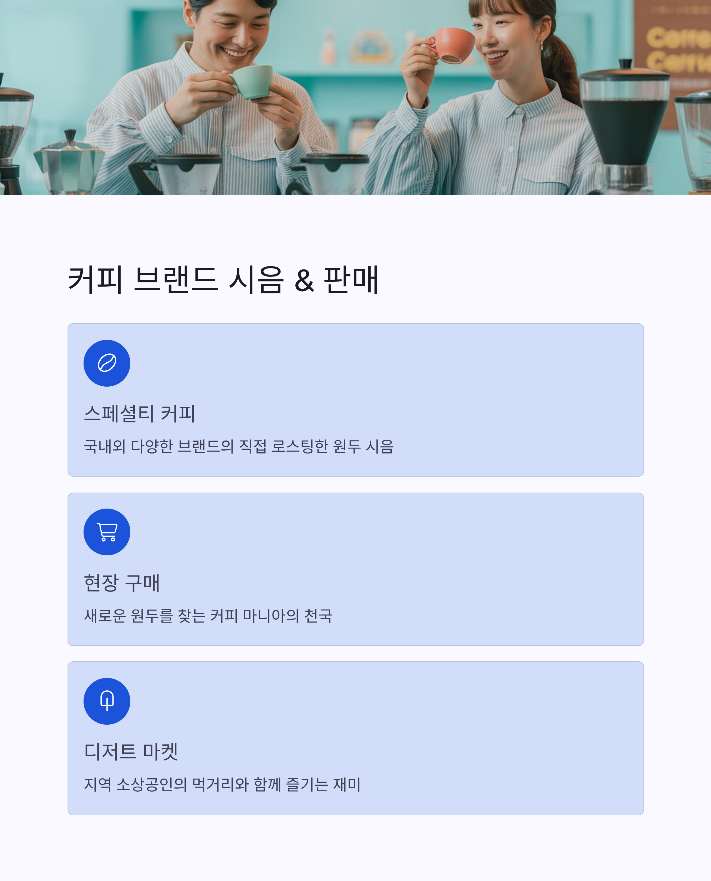 마시는 것만으로 끝나지 않는다, 커피 브랜드 시음 & 판매
