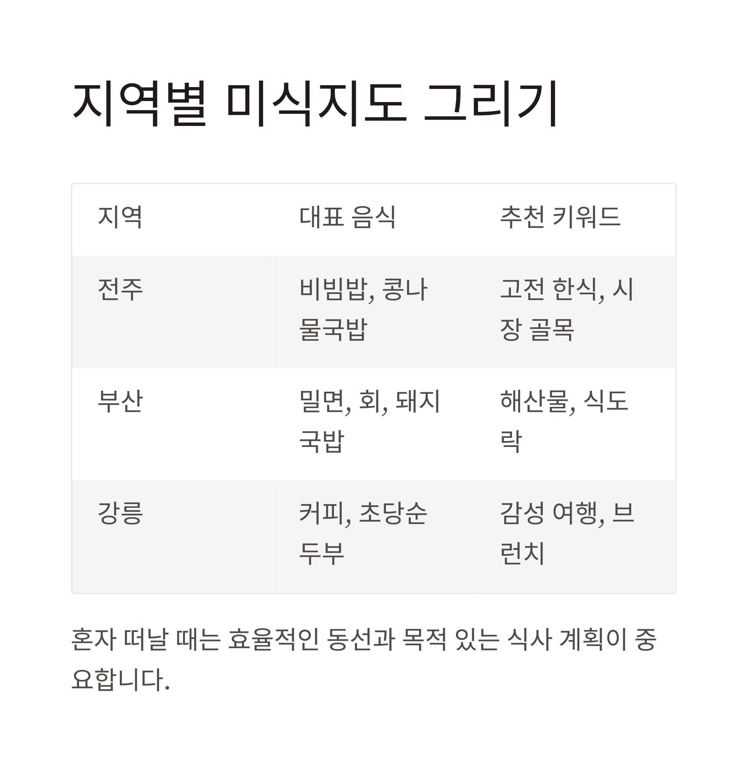 혼자 떠날 때는 효율적인 동선과 목적 있는 식사 계획이 중요합니다