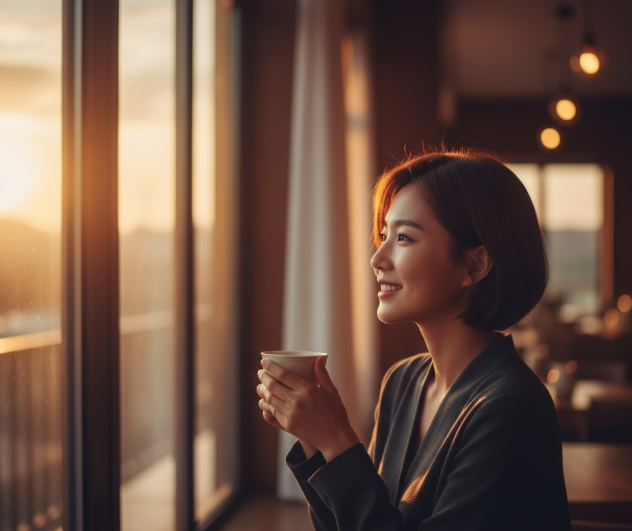 햇살 좋은 창가 자리에서 여유롭게 즐기는 식사,