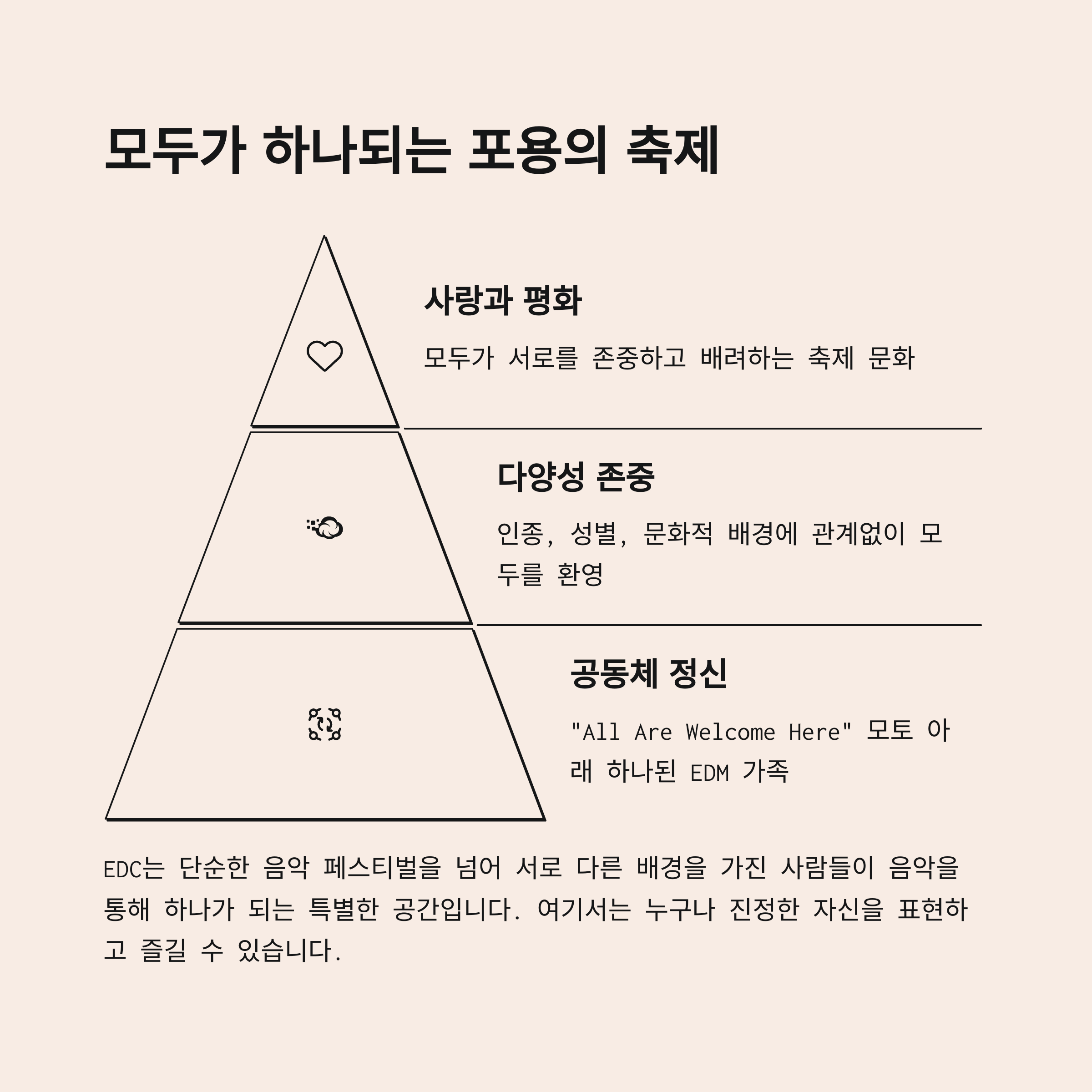 음악 덕후이든 처음 참석이든 모두를 환영하는 포괄적 환경은 EDC만의 매력입니다.