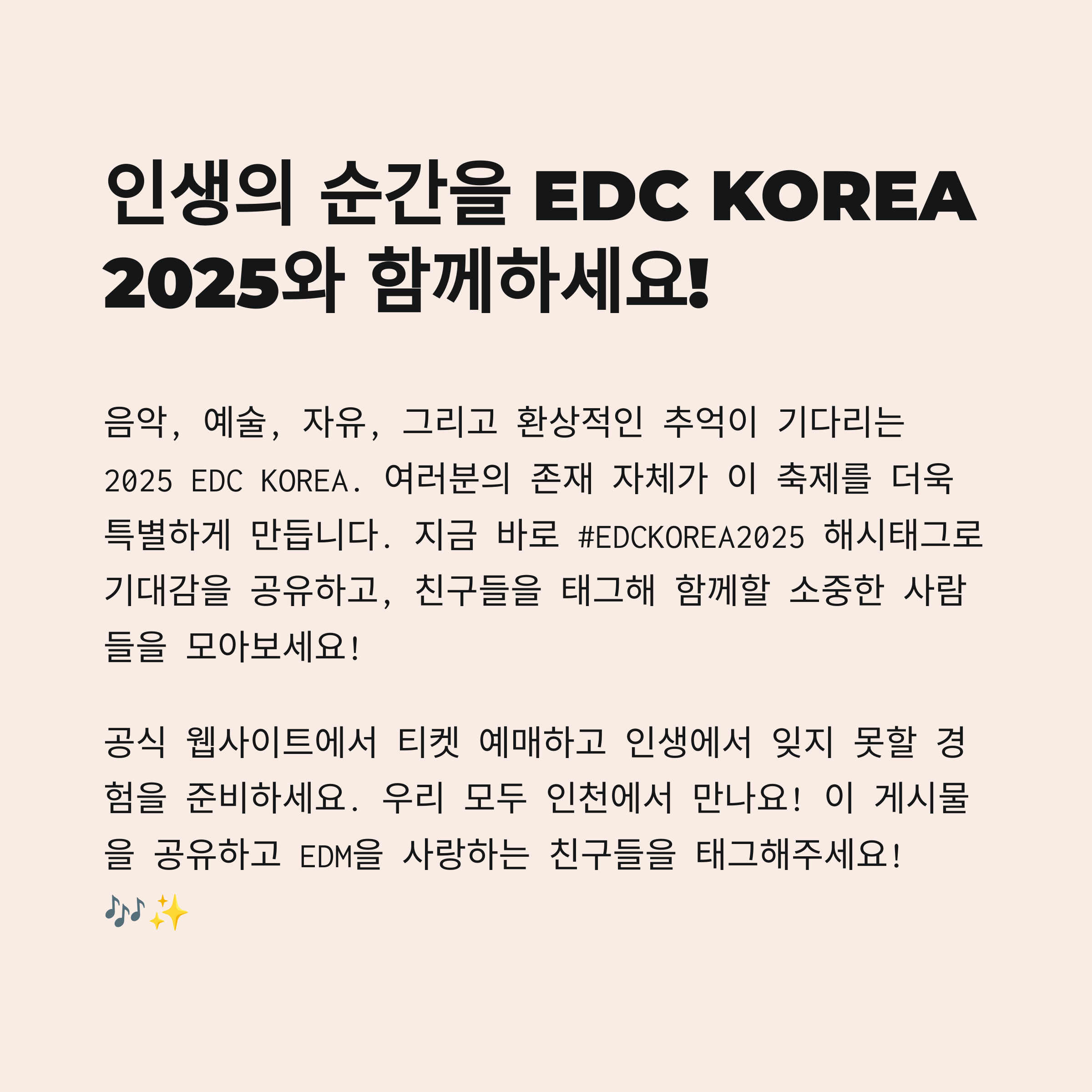 EDC KOREA 2025는 전 세계 EDM 팬들의 열정을 끌어모으는 상징적인 축제입니다.