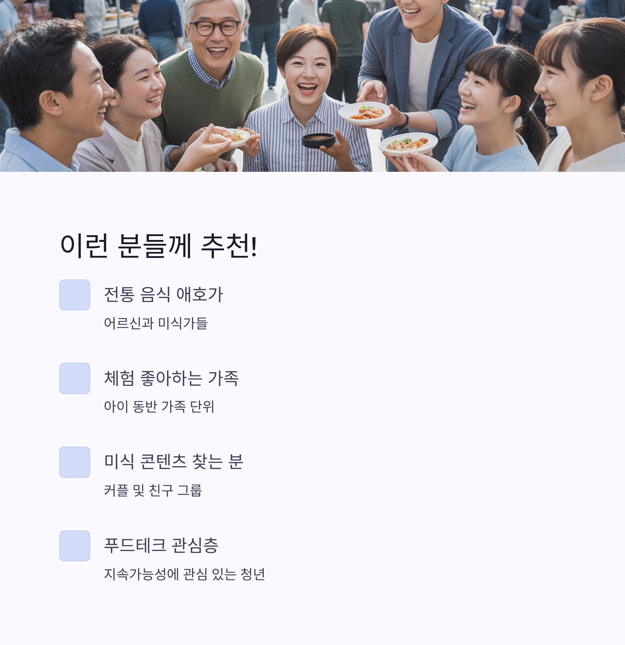 - 미식 콘텐츠를 찾는 커플 및 친구 그룹