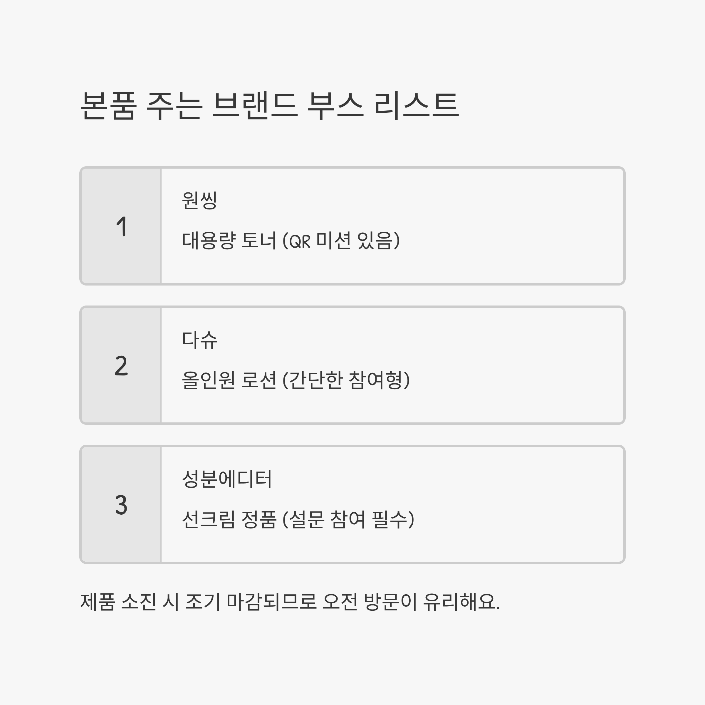 본품 주는 브랜드 부스 리스트 대공개