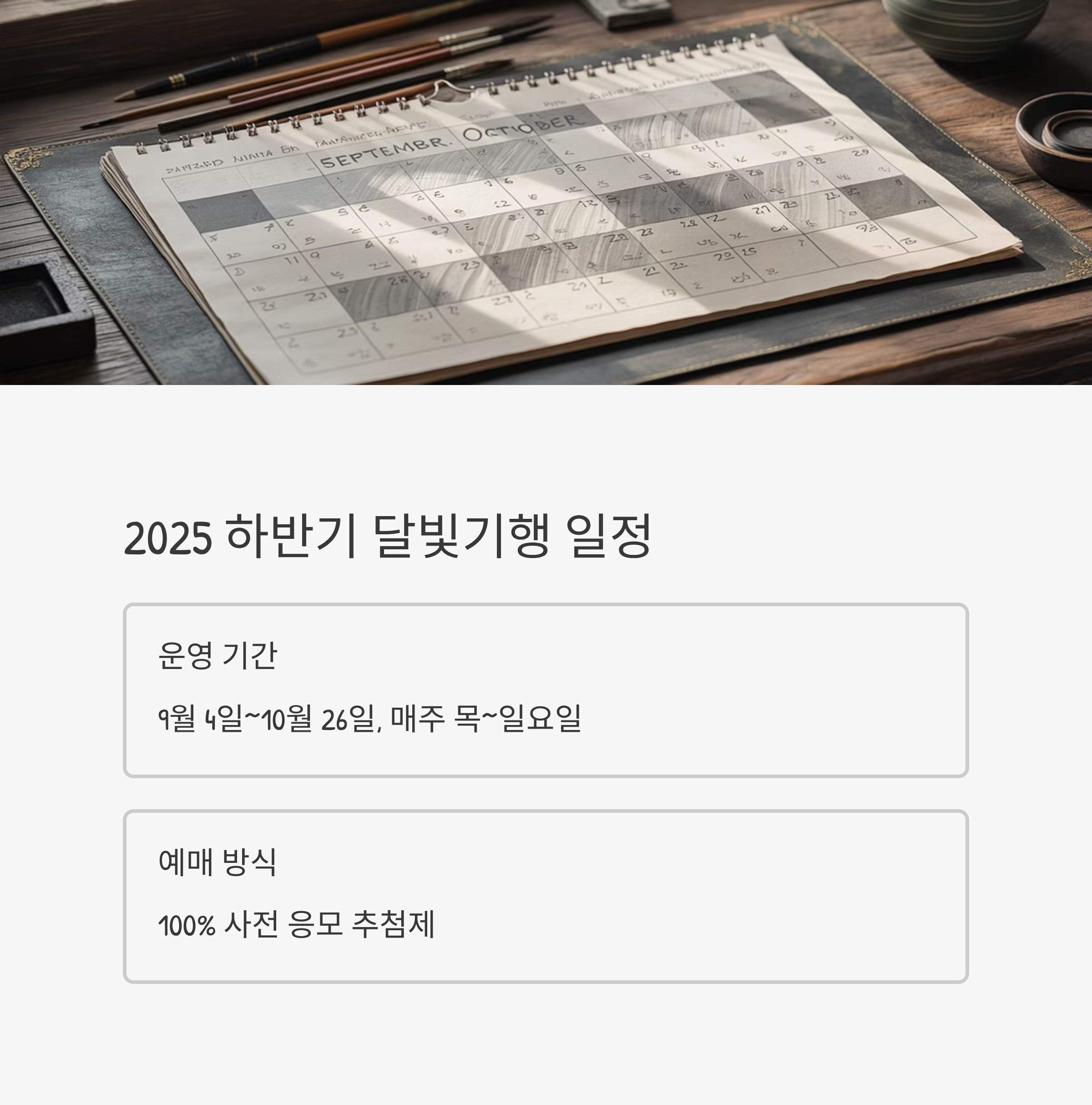 2025년 9월 4일부터 10월 26일까지 매주 목~일요일마다 운영됩니다.
